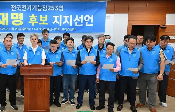 울산시의회서기자회견"국민의삶변화시켜온이재명이기에"..."정책기조에공감"[박석철기자]▲전국의전기기능장253명을대표한30여명이28일울산시의회프레스센터에서기자회견을열고이재명후보지지를선언했다.ⓒ울산시의회제공전국의전기기능장253명이28일울산에서이재명후보지지를선언했다.전기기능장253명을대표한30여명은28일울산시의회프레스센터에서기자회견을열고"1973년국가기술사자격법에따라우리기능장들은산업현장에서전기관련최상위기능을보유하여전문성을인정받아왔다"고자신들을소개했다.이어"최근들어기능장에대한사회적인식이저평가되고있어안타까운현실"이라며"기능장들은새기술에대한직무교육이의무화되어있지않아산업발전속도에뒤처지고있는것이현실이라기술사와동일하게기능장도자격증취득후최신기술과지식습득을위한직무교육을시급히시행해산업발전에능동적으로대처해야한다"고주문했다.또"이러한제도적장치마련은산업현장에서발생하는전기관련사고를사전에방치할수있다"고덧붙였다.그러면서"성남시장재임시절부터경기도지사로서의활동에이르기까지행정을통해국민의삶을변화시켜온이재명후보가전기기능장제도를본래취지대로운용될수있도록이번공약에반드시반영시켜줄것을요청한다"고밝혔다.이어"우리는산업현장에서국민의생명과안전을최우선시하여일할것을다짐하며전기인인우리의요구가관철될수있도록이재명후보와함께하겠다"고이재명후보를지지했다.한편이들은전기기능장제도에대해설명했다.기능장들에따르면본래한국산업인력공단에서시행하는국가기술전기관련자격등급으로시작했고1974년당시는전기기기기능장과전기공사기능장으로이원화되어있었으나2005년부터전기기능장하나로통합된이래지금까지이어져오고있다.현재전기기능장은전기로인한재해를방지하기위하여전기를합리적으로운용할수있는일정한자격을갖춘사람으로하여금전기공작물공사,유지및운용에관한업무를수행하고있다.울산지역물리치료사·치과위생사들이재명지지선언▲울산지역물리치료사·치과위생사협회가27일오후7시민주당울산시당시민홀에서이재명지지선언기자회견을하고있다.ⓒ민주당울산선대위한편울산지역물리치료사·치과위생사협회가이재명후보지지를선언했다.27일오후7시민주당울산시당시민홀에서이재명지지선언기자회견을가진협회참석자20여명은이선호상임선대위원장,정창윤공동선거대책위원장등울산선대위와정책제안경청간담회를진행했다.양측은정책제안경청간담회에서'지역사회통합돌봄프로그램참여,모든국민의인간다운삶을위한기반확대'등다양한정책토론과이재명후보의공약을두고질의응답하는시간을가졌다.울산물리치료사와치과위생사는기자회견에서"이재명후보의회복,성장,행복이라는3대핵심키워드와더불어보편적의료복지실현을목표로하는정책기조에깊이공감한다"며"이를실천할수있는유능한대통령으로이재명대통령후보를지지한다"고밝혔다.이들은"이재명후보는'아파도생계걱정없는나라''지역간의료격차없는나라''누구나질높은의료서비스를받을수있는나라'를약속했다"며"이같은공약은울산시민뿐아니라전국의의료소외계층에게실질적인희망을주는변화의시작"이라며지지이유를설명했다.특히이들은"전문적인물리치료와구강건강관리는포용사회를넘어돌봄사회로가는첫걸음"이라며"따라서국민건강을위한지역사회의통합돌봄프로그램에물리치료사·치과위생사참여확대등을이재명대통령후보에게강력히건의했다"고밝혔다.Copyright©오마이뉴스.무단전재및재배포금지.