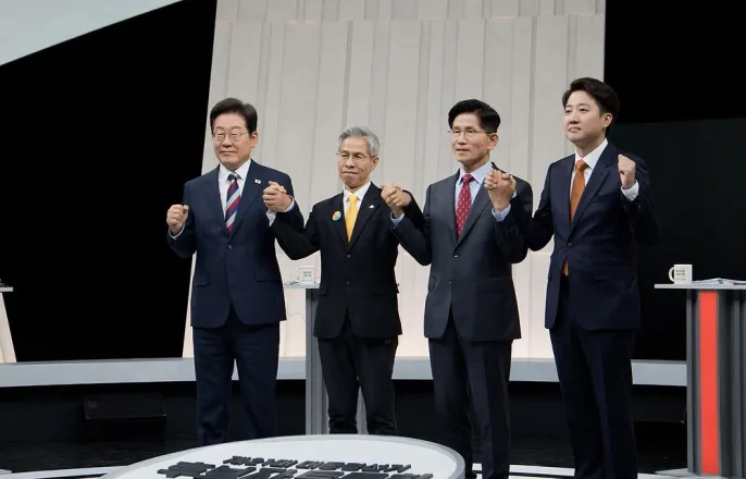 이재명사법리스크,토론서집중공세Q1.대통령돼도5개재판계속받을건가李"법과원칙따라..국회서논의중"Q2.유죄취지결정한대법원장왜탄핵하나李"내가시킨게아니다"Q3.고발된대북송금유죄나면美입국도못해李"내가관여했다는근거없다"27일오후서울마포구상암동MBC스튜디오에서열린중앙선거방송토론위원회주관제21대대통령선거3차후보자토론회시작에앞서각정당대선후보들이기념촬영을마친뒤자리로돌아가고있다.왼쪽부터이재명더불어민주당,권영국민주노동당,김문수국민의힘,이준석개혁신당대선후보./사진=뉴시스[파이낸셜뉴스]이재명더불어민주당대선후보의5개재판관련사법리스크가27일마지막TV토론회의주요화두로부각됐다.김문수국민의힘대선후보는이재명후보의사법리스크를강조하면서"이재판들을우선중지를시키는것은그만두고,재판자체를받아야된다.지연시켜서도안된다"면서"대통령이되더라도재판하는것은당연히받아야된다"고촉구했다.이에이재명후보는"사법절차문제는법과원칙에따라따르면된다"면서"국회에서논의중이기때문에단정하지않았으면좋겠다"고답했다.대통령당선시자신의재판중단여부에대한구체적인답변보다원론적인답변으로집중공세를피해나갔다는평가다.다만이재명후보는자신의재판들에대한유죄시셀프사면할것인지에대한질문에는"이론적으로불가하다"면서거리를뒀다.최근가장논란이된민주당에서이재명후보에대한공직선거법유죄취지파기환송을결정한대법원장을겨냥한탄핵과대법관30~100명증원을법개정으로추진한것에대해이후보는"대법관특검과탄핵은제가지시한바없다"면서민주당의원들이개별적으로추진했다고선을그었다.대미외교의논란요소로꼽히는쌍방울그룹대북송금뇌물의혹사건과관련해이재명후보는"제가대북송금에관여했단것은아무근거가없다"면서"주가조작을하다가수사를받으니까아마도그것을도박자금으로썼다는설도있는데진상이곧규명될것"이라고답변,쌍방울과자신은무관하다고반박했다.■"재판계속받아야"vs."국회논의중"김문수후보는이날중앙선거관리위원회주관'정치'분야제21대대선후보자토론회에서이재명후보에게대통령에당선되더라도진행중인5개재판들을계속받을것을촉구했고,이에이재명후보는자신의재판관련법안들이아직국회논의중이라며즉답을피했다.김후보는"이후보는5개재판을받고있는데본인이대통령이되면중지시키는법안을만들고,대법원이허위사실공표죄(유죄취지파기환송을)하니선거법을(처벌근거를삭제하게)바꾸려한다"며"대통령이되더라도재판을받아야한다"고요구했다.이에이후보는"수없이많은기소는검찰정권윤석열정권의증거없는기소였다"며일반적인사법절차는'법과원칙'에따라따르고,법안들도국회에서논의중이라답했다.민주당은대통령당선시진행중인재판을중지하는'형사소송법개정안'과선거법상허위사실공표죄요건중행위를삭제하는'공직선거법개정안'등이후보재판에영향을미칠수있는법안들을추진하고있다.이가운데형소법개정안의경우본회의에오른상태다.구여권에선이재명후보가대통령에당선시,거대의석을가진민주당이해당법안을처리하고대통령이된이후보는거부권을행사하지않으면서이재명후보의재판이중지될가능성이크다고보고있다.다만,한국리서치가KBS의뢰로지난13~15일전국만18세이상남녀1000명을전화면접조사한결과,응답자의60%가대통령도예외없이재판을받아야한다고응답했고대통령에대한재판중지응답은37%였다.해당조사표본오차는95%신뢰수준에±3.1%p로자세한내용은중앙여론조사심의위원회홈페이지를참조하면된다.27일오후서울마포구상암동MBC스튜디오에서열린중앙선거방송토론위원회주관제21대대통령선거3차후보자토론회시작에앞서각정당대선후보들이기념촬영을마친뒤자리로돌아가고있다.왼쪽부터이재명더불어민주당,권영국민주노동당,김문수국민의힘,이준석개혁신당대선후보./사진=뉴시스■"대법원장왜탄핵?"vs."제가시킨게아냐"김문수후보는이재명후보를향해"대법원장과대법관전원재판부에서공직선거법위반유죄가됐는데왜대법원장을탄핵한다고하고,특검한다고하고,청문회를하는가"라고따졌다.김후보는"대법원장도전부탄핵하고특검하고,청문회에다나오라고하는데이런무법천지의국회가어딨고이런무법천지민주당은민주당인가독재당인가"라면서"대법관숫자를30명,100명으로늘리자는게말이되나.대법원판단으로안되니다시헌재로가져가서4심을하겠다고하는데이재명은황제인가"라고비판했다.김후보의이같은공세에이재명후보는"대법관특검과탄핵은제가지시한바없다"고답하면서,자신과는관련이없음을강조했다.이후보는"법률개정시도를개별의원들이하는게문제가되니보류하라고지시했다"면서"그걸제가다시켜서한것처럼말을안했으면좋겠다.왜재판을받냐묻는데검찰에왜기소했냐물으시라"고반박했다.아울러김문수후보는이재명후보를향해"이재명후보는대통령이되면자기가지은죄5개재판받는것은셀프사면할것인가"라고묻자,이후보는웃으면서"이론적으로불가능하다"고답했다.■대북송금의혹에이재명"관여했단근거없다"쌍방울그룹대북송금뇌물의혹사건과관련,