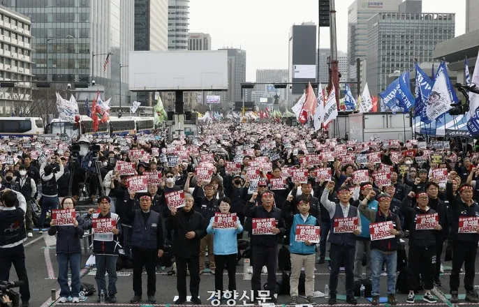 전국에서잇따라집회·행진예고‘윤석열즉각퇴진사회대개혁비상행동’(비상행동)이지난27일서울광화문광장일대에서윤석열대통령탄핵을촉구하는집회를열고있다.문재원기자헌법재판소의윤석열대통령탄핵심판선고가예상보다미뤄지면서주말마다인용과기각·각하를촉구하는인파가광장에집결하는양상이반복되고있다.29일에도전국에서진보,보수진영의집회가예고됐다.전북전주에서는민주노총등시민·사회단체로구성된윤석열퇴진전북운동본부가이날오후2시모래내시장에서‘윤석열즉각파면촉구범시민대행진’을한다.참석예상인원은500여명이다.이들은대통령의조속한탄핵을요구하면서모래내시장을출발해중앙시장,전동성당,한옥마을,오목대로이어지는3㎞구간을행진할계획이다.광주지역180여개시민·사회단체가모인윤석열정권즉각퇴진·사회대개혁광주비상행동도이날오후5시부터제20차총궐기대회를연다.5·18민주화운동의주요거점중한곳인광주동구5·18민주광장에서매주토요일마다열리는이대회에는시민500여명이참석할예정이다.광주비상행동은취재요청서를통해“12·3불법계엄을국민저항과국회의원들의헌신으로막아선지114일이지났다”며“하지만헌법재판소는국민의삶이벼랑으로내몰리는상황에서도내란수괴의파면을미루고있다”고지적했다.이날대회참석자들은1.6㎞떨어진광주지방법원을거쳐다시민주광장으로돌아와재차탄핵을촉구하고헌법재판소를규탄하는대회를이어갈방침이다.부산에서도‘정권퇴진부산비상행동’이이날오후4∼7시서면동천로일대에서윤대통령탄핵을촉구하는집회를연다.신고인원은7000명으로지난주신고인원(3000명)보다대폭늘었다.경찰은200여명의경력을동원해집회를관리할예정이다.울산과제주에서는탄핵찬반집회가각각열린다.보수기독교단체인세이브코리아는울산남구현대해상앞대로에서이날오후1시에탄핵반대집회를연다.주최측은집회참석인원을1만명으로예상했다.한국사강사전한길씨를비롯해김기현·박성민·장동혁국회의원등이참여한다.아울러민주노총울산지역본부는이날오후4시남구롯데백화점광장에서‘윤석열즉각파면울산시민대회’를,정권퇴진경남비상행동은이날오후5시창원시청광장에서탄핵찬성집회를연다.제주에서도세이브코리아가이날오후2시제주시청앞에서탄핵반대집회를,윤석열정권퇴진·한국사회대전환제주행동은이날오후6시같은장소에서탄핵촉구집회를주관한다.앞서세이브코리아는이날오전충북도청앞에서탄핵에반대하는국가비상기도회를열었으며이날오후4시에는같은장소에서충북지역시민단체들이결성한충북비상시국회의가탄핵인용을촉구하는집회를개최한다.지난22일강원도청앞중앙로터리에서개신교단체세이브코리아등보수단체가국가비상기도회를열고윤석열대통령탄핵반대를외치고있다.연합뉴스권재현선임기자[email protected]©경향신문.무단전재및재배포금지.