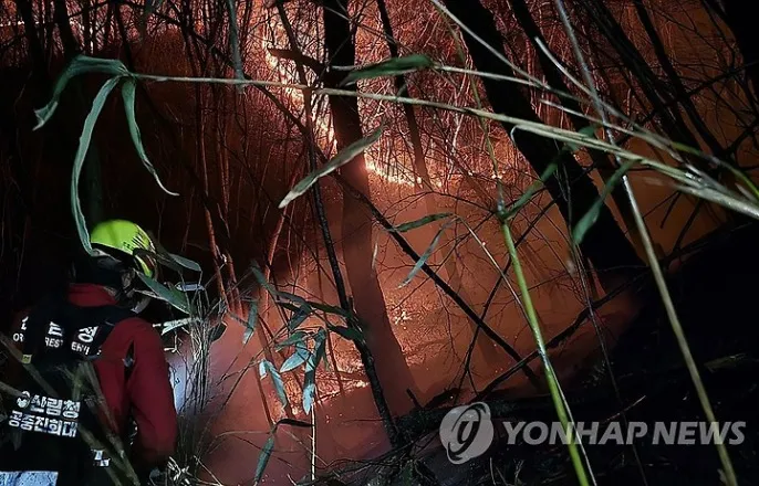 화선형성구역경사심하고고도높아…낙엽등쌓여속불잘안잡혀야간진화작업(산청=연합뉴스)산림청공중진화대원들이28일오전0시10분께경남산청군에서야간진화작업을하고있다.2025.3.28[산림청제공.재판매및DB금지][email protected](산청=연합뉴스)박정헌기자=경남산청산불이9일째에접어든가운데마지막남은화선인지리산권역주불진화가좀처럼진전을보이지못하고있다.29일산림당국에따르면이날낮12시기준진화율은97%로오전7시기준보다1%올랐다.전날산림당국은하동권주불진화를완료하며마지막화선이형성된지리산권역방어선구축을강화하고인력·장비를집중배치해진화작업을이어갔다.그러나강풍등으로일몰전주불완전진화에실패하며야간대응에돌입했다.산림당국은일출과동시에헬기55대와인력1천598명,차량224대를투입해주불진화에집중하고있다.그러나화선이형성된구역은경사가심하고고도가높은탓에인력투입이어려워불길제거에애를먹고있다.특히자연상태에서관리없이오랫동안쌓인낙엽과산죽(대나무류)때문에헬기로물을뿌려도표면만적실뿐속불까지잡는데어려움을겪고있다.산불영향구역은1천858㏊,총화선은71㎞로남은길이는지리산권역1.9㎞이다.임상섭산림청장은이날산불현장에서브리핑을열고"주불이남은내원계곡은낙엽층이두꺼워산불진화에어려움이많은지역"이라며"오늘은일출과동시에헬기와인력을투입해주불진화에총력을기울이고있다"고말했다.그러면서"지난밤지리산정상과약4.5㎞떨어진저지선에있던화선을내원계곡쪽약2㎞뒤로후퇴시켰다"며"오늘도유관기관과긴밀한협조체계를유지하며주민과진화대원의안전을최우선으로한진화작전을수행하도록하겠다"고덧붙였다.산불로인한인명피해는사망4명,중·경상10명등총14명이다.이재민대피도장기화하며현재산청동의보감촌등7개소에이재민528명이머물고있다.또주택28개소,공장2개소,종교시설2개소등시설83개소가피해를봤다[email protected]▶제보는카톡okjeboCopyright©연합뉴스.무단전재-재배포,AI학습및활용금지