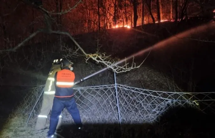 산청산불야간진화작전계획도.2025.3.28/뉴스1한송학기자(산청=뉴스1)한송학기자=경남산청산불현장지휘본부는28일야간진화작업으로4㎞잔여화선진화에총력전을벌인다는계획이다.본부는이날오후7시산불현황브리핑을열고야간작업은주불진화가목표라며이같이설명했다.야간작업에는공중및특수진화대,소방,공무원,경찰등1030명을투입한다.공중진화대와특수진화대,군수색대는잔여화선4㎞중지형등으로진화가어려운1~2㎞에집중적으로투입할예정이다.야간진화는확산하는불을차단하고비화하는불씨를막으면서3개구역에서특수작전을펼칠계획이다.산청산불현장지휘본부가28일산불현황과진화계획등을브리핑하고있다.2025.3.28/뉴스1한송학기자당국은이날주간에헬기43대,인력1527명,장비234대를투입해진화작업을벌였다.이날오후5시기준화재영향구역은축구장2614개규모인1830㏊다.현재전체화선71㎞중67㎞를진화했고,잔여화선은4㎞다.이불로인한인명피해는사망4명,중상5명,경상4명이다.이날진화작업에나섰던소방대원1명이발가락골절로병원치료후귀가조처되면서경상1명이늘었다.시설피해는이날주택과종교시설등9곳이추가로불에타총83곳(주택29곳,공장2곳,종교시설3곳등)으로늘었다.주민대피수는2009명에서현재크게줄었다.현재산청군주민395가구582명이아직집으로돌아가지못하고있다.이들은동의보감촌등7곳으로나눠대피해있는상태다.박명균경남도행정부지사는"유관기관과긴밀한협조체계를유지하고가용자원을총동원해도민의안전및지리산천왕봉을지키기위해최선을다하겠다"고말했다[email protected]©뉴스1.Allrightsreserved.무단전재및재배포,AI학습이용금지.