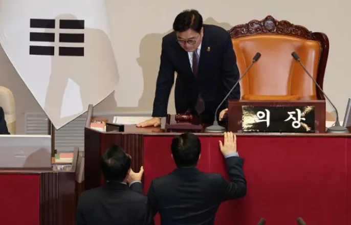 우의장,상법개정안본회의상정안해민주당"주주권익보호위해개정필요"與"경영권위협...이재명식양두구육"박찬대더불어민주당원내대표와박성준원내수석부대표가27일국회에서열린본회의에서우원식국회의장이상법을상정하지않겠다고하자항의하고있다.뉴시스더불어민주당주도로27일국회본회의에서강행하려던'상법개정안'처리가불발됐다.우원식국회의장이“여야간이견이너무커서교섭할시간이필요하다”며제동을걸었기때문이다.민주당은“국민의힘몽니에편을들어준것으로매우유감”(진성준정책위의장)이라고반발했다.전날야당단독으로국회법사위를통과한상법개정안은이사가충실해야하는대상을기존의‘회사’에서‘회사및주주’로넓힌것이골자다.민주당은“소액주주권익을보호하고기업투명성을확보하기위한개정”이라고강조하지만재계에선“주가가떨어졌다”는이유로각종소송에휘말리는등기업경영권침해소지가있다”고반발하고있다.경제8단체는기업경영에서의악영향을우려하며법안철회를호소했다.국민의힘"이재명식양두구육"권영세(오른쪽)국민의힘비상대책위원장과권성동원내대표가27일국회에서열린비상대책위원회의에서새로선보인머그컵으로건배를하고있다.머그컵에는'국민의힘'과'진심으로채웁니다'라는글귀가양면에새겨져있다.고영권기자권영세국민의힘비상대책위원장도“기업의경영권을위협하고경쟁력을떨어뜨리는위험천만한법안”이라며"최근실용주의와친기업정책을표방하고있지만,이것만봐도결국이재명식양두구육(양머리를내걸고개고기를판다)”이라고비판했다.우의장이이날본회의상정을거부한데는이같은여당과재계의반발이영향을미쳤다.28일우의장과최상목대통령권한대행,여야원내대표가모이는국정협의회에서연금개혁,추가경정예산안등현안을놓고성과를내려면여당을자극해선안된다는판단도작용한것으로보인다.우의장은이날기자회견에서“우리사회에미치는영향이큰법안임에도여야의이견이커최대한교섭할시간을주는게맞겠다고판단했다”며“좀더의견을모아보라고했다”고밝혔다.더불어민주당주식시장활성화TF소속의원들이27일오후서울여의도국회본회의장앞에서국민의힘의상법개정이행을촉구하는규탄피켓을들고구호를외치고있다.뉴스1그러나민주당은야당출신인우의장이사실상여당의손을들어준것에반발했다.특히이번상법개정안은이재명대표가“대한민국주식시장이선진자본시장으로향하는첫걸음”이라면서주도적으로추진하는입법과제다.이에본회의장밖에서'국장살리는상법개정즉시상정’이적힌피켓시위를벌였고,박찬대원내대표와박성준원내수석부대표는본회의장단상앞으로나가우의장에게직접항의했다.우의장은상법개정안의'협상데드라인'은제시하지않았다.강유정민주당원내대변인은“빠른시일내에처리되도록의장에게요구할것"이라며“3월임시국회가내달5일개회하는만큼6일또는13일에본회의를열어처리하는방안도요구할방침”이라고밝혔다.정승임기자[email protected]©한국일보.무단전재및재배포금지.