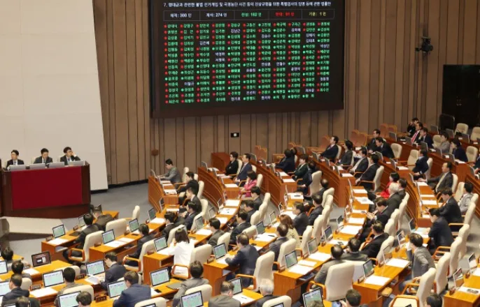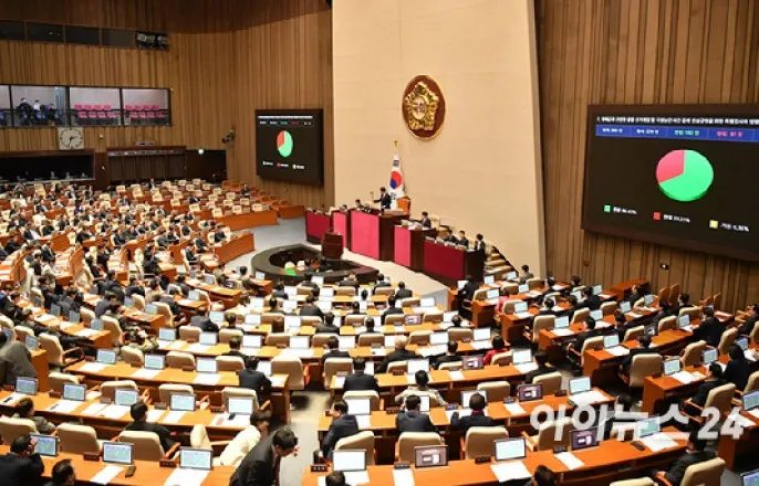찬성182인·반대91인·기권1인김상욱홀로찬성…與,거부권요청K칩스·전력망·고준위·해풍법통과상법개정안,의장반대로상정무산27일오후서울여의도국회에서열린본회의에서명태균과관련한불법선거개입및국정농단사건등의진상규명을위한특별검사의임명등에관한법률안이통과되고있다.[사진=곽영래기자][아이뉴스24유범열기자]윤석열대통령부부의공천개입의혹을수사하는'명태균특검법'이27일야당주도로국회본회의를통과했다.반도체기업시설투자에대한세액공제율을확대하는내용의'K칩스법'과국가기간전력망확충특별법(전력망확충특별법)등에너지3법은여야합의로본회의문턱을넘었다.이날오후국회에서열린본회의에서,'명태균과관련한불법선거개입및국정농단사건등의진상규명을위한특별검사의임명등에관한법률안'(명태균특검법)은재석274인,찬성182인,반대91인,기권1인으로통과됐다.이번특검법에는재표결과정에서4차례폐기됐던'김건희특검법'가운데김건희여사의공천개입의혹만따로떼어수사하는내용이담겼다.나아가대법원장이특별검사후보자2명을추천하는'제3자추천'방식으로진행된다.수사대상은△2022년지방선거·재보궐선거·22대총선등선거개입△불법·허위여론조사무상제공에따른공천거래△20대대선여론조사무상제공에따른공천거래△대우조선파업·창원신규국가첨단산업단지지정개입△대통령일정등국가기밀누설의혹△사건증거인멸및봐주기수사등불법행위△수사과정에서인지된관련사건등7가지가포함됐다.국민의힘은특검법이통과돼수사대상이여당전체로확대되면,혹시모를조기대선국면에서당에부정적영향을미칠것이라고보고있다.이에여당의원들은이날표결에참여해대부분반대표를던졌다.다만김상욱의원이홀로찬성표를던졌다.김의원은의총진행중기자들과만나"이번특검은사실찬성하고싶지않았다"면서도"며칠전관련한김여사와윤대통령의녹취록도공개됐다.당시윤대통령의거짓말이명백하게드러났는데도불구하고수사에진척이없던점,조기대선시당에큰리스크로작용할거란생각으로찬성했다"고밝혔다.국민의힘은최상목대통령권한대행경제부총리겸기획재정부장관에게특검법에대한법률안재의요구권(거부권)행사를요청한다는방침이다.이들은본회의직전의원총회에서규탄대회를열고"특검악용정치공작저질특검철회하라"등의구호를외치기도했다.박찬대더불어민주당원내대표와박성준원내수석부대표가27일서울여의도국회에서열린제422회국회(임시회)제7차본회의에서우원식국회의장이상법을상정하지않겠다고하자항의하고있다.[사진=곽영래기자]이날여야는K칩스법과전력망확충법·고준위방사성폐기물관리에관한특별법(고준위방폐장법)·해상풍력계획입지및산업육성에관한특별법(해상풍력특별법)이포함된에너지3법등장기간여야합의가이뤄지지못했던민생경제관련법안을통과시켰다.한편야당은이날주주이사충실의무가담긴'상법개정안'도본회의에서처리할계획이었으나,우원식국회의장이여야추가협의를요청하며무산됐다.강유정민주당원내대변인은이에대해기자들과만나의장결정에대해유감을표한다며,"3월임시회가5일개회되니민주당은6일이든13일이든본회의를열어상법개정안을처리해줄것을강력하게요구한다"고말했다./유범열기자([email protected])Copyright©아이뉴스24.무단전재및재배포금지.