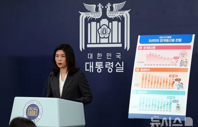 국회향해'인구전략기획부'설립추진법안협조요청[서울=뉴시스]최진석기자=유혜미저출생대응수석이26일서울용산대통령실청사에서2024년합계출산율관련백브리핑을하고있다[email protected][서울=뉴시스]박준호기자=대통령실은26일지난해합계출산율·출생아수가증가수치를나타낸통계청발표와관련해"수요에기반한정책을속도감있게추진한것이청년들의저출생정책에대한기대를높이고출산을결심하는데긍정적영향을미쳤다"고평가했다.유혜미대통령실저출생대응수석비서관은이날용산대통령실에서브리핑을통해"2024년저출생반전은국민의삶에서다시시작한저출생정책과기업,국민모두의힘으로이룬성과"라며"확고한추세반전으로이어가기위해2025년에도효과가검증된정책중심으로지속적으로추진할것"이라고밝혔다.통계청이발표한'2024년출생·사망통계(잠정)'에따르면지난해출생아수는23만8300명으로전년대비8300명(3.6%)증가했다.출생아수는2015년(0.7%)소폭증가한후8년연속감소해오다가지난해9년만에반등했다.여성1명이평생낳을것으로예상되는평균출생아수를나타내는합계출산율은0.75명으로전년(0.72명)보다0.03명증가했다.연령별출산율은30대에서증가했다.여자인구1000명당출산율의경우30대초반이70.4명으로가장높았다.30대초반여성인구증가가출산율반등을주도하면서35세이상인고령산모의비중도37년만에감소로전환했다.유수석은"30대후반은여성인구가2.7%감소했음에도30대후반여성출생아수가2023년6만8000명에서2024년7만명으로4.1%증가하는이례적인결과를나타냈다"며"이는30대여성인구증감만으로는출생아수증감을설명하기어렵고정책등추가적영향요인이존재함을보여준다"고지적했다.아울러"결혼생활시작부터첫째아이출산까지평균시차는2.5년이었는데2024년의경우2023년2.47년대비0.01년짧아졌다"며"결혼이후출산결정이빨라진것은출산과양육에대한정부지원확대와아이에대한긍정적인식이높아진것으로보인다"고했다.유수석은정부차원의출산장려를위한정책으로신혼부부·신생아특례대출확대,보호출산제및출생통보제시행,기업의출산장려금지급및비과세혜택등을제시했다.유수석은"저출생정책은일가정양립,양육,주거3대핵심분야정책의빈틈을보완하는한편출산율증가추세를이어가도록다자녀와다양한가족형태를지원하는방안을발굴해나갈것"이라고말했다.또한"저출생반전을추세전환이끌핵심요인중하나가인식의변화"라며"2025년에는아이와함께하는행복을넘어눈치를보지않는제도사용과부모와함께하는육아등의정책을확대하고고령화와관련해세대간공생에중점을두고인식개선에힘을쏟겠다"고했다.유수석은"금년에는저출생대응수석실과여러부처가함께내년부터향후5년간적용될저출생대책의마스터플랜인제5차저출산고령사회기본계획을만들예정"이라며"정책환경의변화흐름을세심히파악하고해외사례와기존정책들에대한철저한평가를통해정책방향과추진체계를설계해나가도록할것"이라고했다.아울러유수석은"정부는인구문제에대한견고한거버넌스구축을위해인구정책을총괄조정하는컨트롤타워를수행할인구전략기획부설립법안을발의하고추진하고있다"먀"국회상황이쉽지않지만필요성을여야모두공감하는만큼논의가진척되길기대한다"고말했다.☞공감언론뉴시스[email protected]©뉴시스.무단전재및재배포금지.