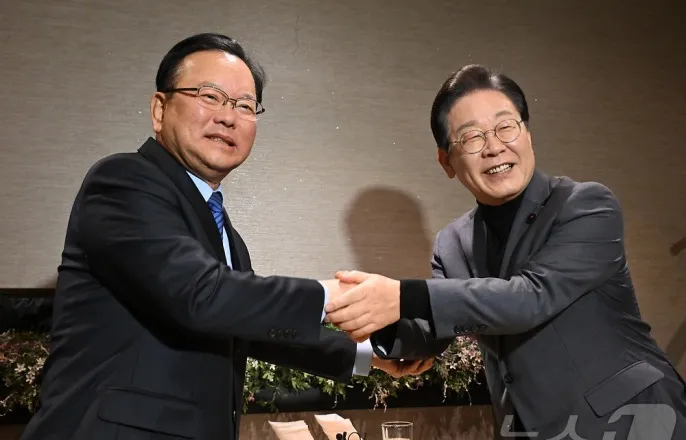 90여분간만찬회동…李,강성지지층에메시지낸것언급金"이재명중도보수발언,그런분들안으려는노력으로이해"이재명더불어민주당대표(오른쪽)가24일서울여의도의한식당에서김부겸전국무총리(왼쪽)와인사하고있다.2025.2.24/뉴스1ⓒNews1국회사진취재단(서울=뉴스1)원태성기자=이재명더불어민주당대표와김부겸전국무총리가24일내란사태극복을위한'통합비전'이필요하다는데공감대를형성했다.'국민통합및화해에관한메시지'의필요성에도공감했다.다만김전총리가'개헌'을포함해정치개혁방안도필요하다고제안하자,이대표는"지금은내란극복에집중해야할때"라고거리를뒀다.이대표와김전총리는이날오후여의도소재한식당에서90여분간만찬회동을진행했다.김전총리는식사전인사말을통해"그동안불법계엄에맞서민주헌정수호세력과단합해민주헌정을지키기위해서애쓰신이대표의노고에감사하다"며"앞으로탄핵이인용될때까지모두가힘을합쳐야한다고생각한다"고말했다.이에이대표는"오랜만에총리님뵙게됐는데,국가에대한걱정이많고,당에대한우려가많은것같다"며"그간고민하셨던것을오늘제가겸허히듣고,앞으로나아갈길을잘찾아보겠다"고했다.두사람의식사자리는진지하면서도밝은분위기로진행됐다고전해졌다.특히두사람은'민주헌정수호를위한세력들'을엮어국민적기반이탄탄한새로운정부를구성해야한다고입을모았다.한민수민주당대변인에따르면구체적으로김전총리는"미국트럼프정부의통상압력에중국의인공지능(AI)등기술굴기속한국의성장동력은가라앉고있는상황"이라며"현재의준(準)내전상태로는이런어려움을극복할수없기때문에내란사태극복을위한통합비전이필요하다"고했다.김전총리는그러면서이대표를향해"국민들에게국민통합과화해의메시지를내달라"는요청도했다.이에이대표는김전총리의일련의제안이"필요한일"이라고화답했다.김전총리는또"의료대란수습과추경(추가경정예산)편성을통한국내경제회생등에민주당이적극적으로나서야한다"고주문했고,이대표는이에적극공감하면서"노력하겠다"고말했다.이재명더불어민주당대표가24일서울여의도의한식당에서김부겸전국무총리와만찬을하기위해들어오고있다.2025.2.24/뉴스1ⓒNews1국회사진취재단다만개헌에있어선이대표는선을긋는모습을보였다.한대변인에따르면김전총리는"그간의당운영에있어상처받고떠난사람들을포용해야한다"고요청하면서"개헌을포함한정치개혁방안도필요하다"고말했다.이어"이대표가개혁의그림을그리고대한민국을새롭게만들모습을보여줘야한다.의회를넘어국민참여정치개혁이필요하다"고강조했다.이에이대표는"생각이없지않지만지금은내란극복에집중해야할때"라고답했다.김전총리는만찬후기자들과만나이와관련"이부분(개헌)에대해계속입장을밝히지않으면어떻게하나.입장을밝히라고(이대표에게)내가계속요구했고이대표는'탄핵에집중할때'라고하면서조금공방이오고가기도했다"고전했다.김전총리에따르면이대표는전날(23일)자신이강성지지층을향해사실상비명(비이재명)계에대한과도한공격을삼가달라고메시지를낸것에대해먼저언급하기도했다.김전총리는친명(친이재명)성향강성지지층인일명개딸(개혁의딸)을향해비판의목소리를내왔다.한편김전총리측오영식전의원에따르면김전총리는이대표의당정체성에대한'중도보수'언급에있어"이대표의단정적표현이오해를불러일으킨측면이있다"면서도"중도보수적입장을가진분들을끌어안기위한노력으로발언취지를이해한다"고말했다[email protected]©뉴스1.Allrightsreserved.무단전재및재배포,AI학습이용금지.