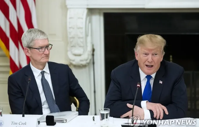 "시설·첨단제조업기금·AI등투자해일자리2만개창출"트럼프"우리일에대한믿음없었다면10센트도투자안했을것"팀쿡애플최고경영자와도널드트럼프미국대통령[EPA연합뉴스자료사진.재판매및DB금지](서울워싱턴=연합뉴스)이도연기자박성민특파원=도널드트럼프미국대통령의고율관세우려속에미국정보기술대기업애플이파격적인국내투자를약속하고나섰다.24일(현지시간)블룸버그통신등에따르면애플은이날성명을통해"앞으로4년동안미국에5천억달러(약714조원)이상을지출·투자할계획"이라고밝혔다.애플은미국에대한투자는이번이역대최대규모라며,이에따라2만개이상의일자리가생길것이라고덧붙였다.신규2만개일자리는연구개발(R&D),실리콘엔지니어링,인공지능(AI)분야에집중된다는게애플의설명이다.이번계획에는텍사스주휴스턴에새공장을짓고,'첨단제조기금'(AdvancedManufacturingFund)을기존50억달러의두배인100억달러(약14조원)로확대하며,AI등에투자를가속하는내용도포함됐다.애플은'폭스콘테크놀로지그룹'과함께올해말휴스턴에서(생성형AI기능인)애플인텔리전스의구성요소인'프라이빗클라우드컴퓨팅'이라는시스템을구동하는서버를생산할계획이라고밝혔다.블룸버그통신은"이는적어도일부생산을해외에서(미국으로)이전하는것을의미한다"며"애플은내년에휴스턴에25만㎡규모의제조시설이문을열것이라고밝혔다"고전했다.팀쿡애플최고경영자(CEO)는성명에서"미국제조업에대한지원을확대하게돼기쁘다"며"미국혁신의역사에서놀라운새장을쓰기위해미국전역의사람들,기업들과협력할것"이라고말했다.애플의이날발표는미국도널드트럼프행정부의중국산수입품에대한관세부과에대응하는차원에서나온것으로풀이된다.앞서지난21일트럼프대통령은백악관에서열린주지사모임에서쿡CEO가백악관집무실에와서"수천억달러를투자하겠다고말했다"라고언급했다.트럼프대통령은이어"쿡CEO가멕시코에있는두개공장을중단하고대신미국에서제품을생산할것"이라고밝혔다면서"그들은관세를피하고싶어한다"라고전했다.트럼프행정부는지난4일중국산수입품에대해10%의추가관세를부과했는데,아이폰등자사기기의상당부분을중국에서생산해미국에판매하는애플로선이런관세가상당한부담이될것으로관측됐다.트럼프1기때에도중국산제품에대한관세가부과됐으나,쿡CEO는당시트럼프대통령을설득해관세면제를얻어낸바있다.블룸버그통신은"그(쿡CEO)는트럼프1기때(애플에부과하는)관세가한국의삼성전자같은경쟁사에이익이될것이라고주장했다"고전했다.트럼프대통령은"애플이미국에역대최대인5천억달러를투자하기로결정했다"며이번발표를반겼다.그는이날오전자신이설립한소셜미디어트루스소셜에이같이적은뒤"그이유는우리가하는일에대한믿음때문이었다.그믿음이없었다면그들은10센트도투자하지않았을것"이라며"팀쿡과애플에감사하다"고밝혔다[email protected]▶제보는카톡okjeboCopyright©연합뉴스.무단전재-재배포,AI학습및활용금지