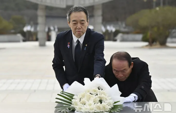 강기정시장만나경제·산업·문화교류·협력방안모색[광주=뉴시스]박기웅기자=미즈시마고이치주한일본대사가21일오전광주북구운정동국립5·18민주묘지를찾아추념탑앞에서헌화·분향하고있다[email protected][광주=뉴시스]류형근박기웅기자=광주시가지역을방문한주한일본대사와경제·산업·문화교류·협력방안을모색했다.광주시는강기정시장이시청비즈니스룸에서미즈시마고이치(水嶋光一)주한일본대사를만나경제·산업·문화교류협력활성화방안에대해논의했다고21일밝혔다.강시장은"한일정상수교60주년기념인해에광주와국립5·18민주묘지에방문해주셔서감사하다"며"최근한강작가의노벨문학상수상과'12·3비상계엄'등으로5·18과광주가세계적으로가치를인정받고있다"고말했다.또"제주항공여객기참사를통해많은해외도시로부터위로를받으면서도시간교류의중요성에대해서깨닫게됐다"며"2002년센다이시와자매결연을맺은이후센다이국제마라톤대회,광주세계김치축제상호참여등왕성한교류를이어가며가장실질적으로왕래하고있다"고설명했다.이에대해미즈시마대사는"여객기참사에대해애도를표하며국립5·18민주묘지를방문해5·18민주화운동에대해많은이야기를들었는데광주시민의강한의지를느꼈고경의를표한다"고전했다.이어"지금까지도시간관계를위해노력을해준것에대해감사하다"며"도시와도시간교류를넘어인적교류활성화를통해한국과일본의협력이활발해지길바란다.시장님과함께미래지향적관계를만들고싶다"고말했다.강시장과미즈시마대사는문화·예술·스포츠분야의교류활성화방안에대해서도의견을나눴다.미즈시마대사는"센다이시국제마라톤대회사례처럼스포츠교류를통해진정한우정이생길수있다고믿는다"면서"특히양국국민간교류가활발해지고있는것도긍정적으로본다.인적왕래확대를통해신뢰관계도돈독해지길기대한다”고밝혔다.[광주=뉴시스]강기정광주시장과미즈시마고이치주한일본대사가악수를하고있다.(사진=광주시청제공)[email protected]*재판매및DB금지앞서미즈시마고이치대사는국립5·18민주묘지를참배하고"5·18민주화운동은한국민주주의의토대"라고밝혔다.미즈시마고이치대사는헌화·분향후'시민군대변인'고(故)윤상원열사묘지를둘러봤다.또문재학열사묘지앞에선한강작가의소설'소년이온다'주인공이라는설명을들었으며사망당시고등학생이었다는이야기를듣자짧은탄식을내뱉기도했다.미즈시마대사는"광주를찾은만큼5·18민주묘지를방문하는것은당연한일"이라며"한국민주주의바탕은5·18에있는것같다.한국인의민주정신에대해많이느끼게됐다"고소감을밝혔다.그러면서"한일관계에서여러가지문제가있었지만이제는미래로나아가야할때"라며"한일국교정상화60주년을맞아양국이두손을맞잡고함께나아갔으면한다"고말했다.☞공감언론뉴시스[email protected],[email protected]©뉴시스.무단전재및재배포금지.