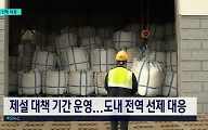 <앵커>다가올겨울철폭설과도로위살얼음에대비해오늘(15)부터내년3월중순까지넉달간전국적으로제설대책기간이운영됩니다.충청북도와도내각자치단체는주민불편을줄이기위해선제적인제설작업을펼칠계획입니다.박언기자입니다.<리포트>눈이조금내렸어도기온이낮으면그대로얼어붙어도로는빙판길로변합니다.그래서제설은필수인데,제때작업이이뤄지지않으면도로는순식간에마비됩니다.앞뒤가꽉막혀출근길교통대란이빚어지면,원성을살수밖에없습니다.오늘(15)부터내년3월중순까지넉달동안도내모든자치단체가제설대책기간으로정하고선제적대응에들어갔습니다.충청북도도로관리사업소는15톤덤프트럭에제설기와살포기를장착해제설준비를마쳤습니다.염화칼슘을미리물과섞어저장탱크에넣어두고는바로갖고나갈수있게했고,제설창고와전진기지에도언제든출동할수있도록장비등을배치했습니다.<인터뷰>이덕장/충청북도도로관리사업소장비팀장"괴산이나진천,음성지역은여기사업소에서멀기때문에거기에장비를3대정도씩배치해서거기전진기지에서바로제설작업을할수있게..."<실크>/제설자재는염화칼슘402톤,소금은1만7천여톤을확보했고,북부와남부지소포함58대의장비를운영해도내도로1,632km구간을책임집니다.//행정구역에따라국도와지방도등의제설을도맡는11개시군에서도똑같이대응책마련에들어갔습니다.<인터뷰>김봉수/충청북도도로관리사업소장"보통(출근길)2시간전에저희들이주요고갯길,빙판길,블랙아이스가생기는그런곳을선제적으로제설작업을먼저한다는..."<기자>박언"충청북도는올겨울철현장중심사전대비체계를구축하고,신속한대응으로도민의불편을최소화할방침입니다.CJB박언입니다."#충청#충북#세종Copyright©CJB청주방송.무단전재및재배포금지.