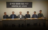 고려대교수152명,윤석열대통령퇴진요구하며시국선언[허은/고려대한국사학과교수]"국민이부여한권력을사유화한윤석열대통령의퇴진을강력히요구한다.특검을즉각시행해그간벌어진국정농단과파행을철저히규명할것도엄중히촉구한다.대통령부부의국정농단을보며우려와당혹감을넘어분노하지않을수없다."지난7일대국민담화를두고는"이정권이나아질가능성이없다는사실을여실히보여줬다"며"현재권력이지속돼선안된다는확신을갖게됐다"고강력비판+++같은날'김건희논문의혹'불거졌던국민대교수61명도시국선언동참국민대교수들역시대국민담화와관련해"실낱같은희망마저접고,국민으로서참을수없는모욕감을느꼈다"며"윤석열대통령이민주공화국지도자로서갖춰야할최소한의자질과능력조차결여돼있다고의심할수밖에없다"전해+++앞서한국외대,한양대,숙명여대,전남대,경희대등전국대학교수들줄줄이시국선언지난8일에는윤대통령모교인서울대에도"아내에만충성하는대통령의모습은국민들에큰절망감을안기고있다"며"윤석열대통령은이미국가지도자로서의신뢰를상실했다"는대자보등장Copyright©JTBC.무단전재및재배포금지.