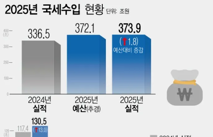 재경부,2025회계연도총세입·세출부마감작년국세수입373.9조…전년比37.4조↑추경기준전망치보다1.8조더걷힌수준작년본예산(382.4조)기준으로는8.5조결손기업실적개선등에따라법인세22.1조↑총세입597.9조…국세수입은예산보다1.8조↑총세출604.7조…불용액10조로10.1조감소5년來예산집행률최고…"경기회복뒷받침"세계잉여금3.2조…"추경검토하고있지않아"[서울=뉴시스][세종=뉴시스]박광온안호균기자=지난해기업실적개선과임금상승영향으로국세수입이전년보다30조원이상증가한것으로나타났다.국세수입실적은추가경정예산(추경)기준세입전망치(372조1000억원)를1조8000억원웃돌며,2023년과2024년2년연속이어진대규모세수결손에서도벗어났다.이에따라정부예산의불용규모도5년만에최소치를기록했다.다만이같은세수실적은세입부진을반영해추경으로목표치를낮춘결과로,본예산(382조4000억원)대비로는8조5000억원부족했다.이에따라사실상3년연속'세수펑크'라는지적도제기된다.재정경제부는10일서울중구한국재정정보원에서2025회계연도의총세입부와총세출부를마감하고세입·세출실적을확정했다고밝혔다.이자리엔허장2차관과이남구감사원감사위원등이참석했다.[서울=뉴시스]허장재정경제부2차관이10일서울용산구한국재정정보원에서열린'2025회계연도총세입부·총세출부마감행사'에서이남구감사원감사위원과함께세입·세출실적을확정하고있다.(사진=재정경제부제공)[email protected]*재판매및DB금지작년국세수입373.9조…추경기준보다1.8조더걷혀마감결과에따르면,지난해국세수입은373조9000억원으로전년(336조5000억원)대비37조4000억원증가했다.이는추경기준국세수입예산(372조1000억원)보다1조8000억원더걷힌수준이다.앞서정부재정은2년연속대규모세수펑크를냈다.2023년엔56조4000억원,2024년엔30조8000억원규모의세수결손이발생했다.그러나지난해에는기업실적회복과고용·임금여건개선등이맞물리며3년만에세수여건이개선됐다.세목별로보면법인세가기업실적개선등에힘입어22조1000억원늘며전체세수확대를주도했다.취업자수증가와임금상승영향으로근로소득세도7조4000억원증가했다.해외주식거래확대에따른양도소득세는3조2000억원,코스피거래대금증가에따른농어촌특별세는2조2000억원각각늘었고,유류세탄력세율인하일부환원영향으로교통·에너지·환경세도1조8000억원증가했다.부가가치세는수출증가에따른환급확대로3조1000억원감소했고,증권거래세역시세율인하영향으로역시1조3000억원줄었다.세외수입은224조원으로예산(227조9000억원)보다3조9000억원덜걷혔다.재경부는넥슨창업자고(故)김정주회장의유족들이물납한NXC주식매각(예산3조7000억원)이성사되지않은영향이대부분이었다고설명했다.국세수입과세외수입을합한총세입은597조9000억원으로예산(600조원)대비2조1000억원부족했다.2024년(535조9000억원)과비교하면총세입규모가62조원가량증가했다.[서울=뉴시스]작년본예산대비로는8.5조덜걷혀…사실상3년연속'세수펑크'지적도한편이번국세수입실적은지난해본예산과비교하면8조5000억원부족한수준이다.정부가지난해6월추가경정예산을마련하면서세입예산을382조4000억원에서372조1000억원으로10조3000억원가량감액하는'세입경정'을실시했기때문에세수결손에서벗어날수있었다.당시경기둔화와수출부진,금융·부동산시장불확실성등을반영한것이었다.재정당국은"2025년은지난2년간의대규모세수결손에서벗어난해"라고평가했다.세입경정을거쳐확정된최종세입예산기준에서결손여부를평가해야한다는설명이다.강윤진재경부국고정책관은이날정부세종청사에서관련백브리핑을열고'지난해본예산기준으로는결손이났다'는지적에"추경을통해세입경정을했고,국회에서최종확정된세입예산이372조1000억원"이라며"수정된세입예산을기준으로국세수입을평가하는것이맞는방식"이라고말했다.이어강정책관은"연도중실제세수가당초예측보다부족하면지출도그에맞춰공식적으로조정하는것이책임있는재정운용"이라며"세입경정을하지않으면예산불용이나하반기집행제한같은부작용이발생할수있다"고설명했다.연중실제세수흐름이당초전망과크게달라질경우추경을통해세입예산을공식수정하고,이에맞춰지출규모를조정하는것이정상적인재정운용이라는취지다.[세종=뉴시스]강종민기자=세종시어진동정부세종청사재정경제부[email protected]세출예산집행률97.7%최근5년간최고…불용액10조로5년來최소2023년과2024년에비해세입여건이개선되면서세출예산집행률도높아졌다.총세출은예산(604조7000억원)중591조원을집행했다.세출예산집행률은97.7%로최근5년기간(2021년97.6%,2022년96.9%,2023년90.8%,2024년95.6%,2025년97.7%)중가장높았다.정부가사용하지못한예산을뜻하는불용액도크게줄었다.세출예산에서집행액과다음연도이월액(3조7000억원)을차감한불용액은10조원으로집계됐다.2024년(20조1000억원)대비10조1000억원감소해최근5년기간중최소수준으로나타났다.총세입에서총세출과이월액을차감한세계잉여금은3조2000억원으로집계됐다.일반회계세계잉여금은1000억원,특별회계세계잉여금은3조1000억원이었다.일반회계국가재정법상세계잉여금은▲교부세(금)우선정산