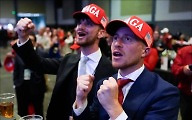 도널드트럼프공화당후보의구호가담긴모자를쓴지지자들.AP=연합뉴스미국대선에서승기를굳히고있는도널드트럼프전대통령이지지자연설을위해팜비치로이동중이라고로이터가보도했다.NYT(뉴욕타임스)는트럼프의당선가능성을95%로예상했다.5일(현지시간)트럼프전대통령이지지자들이모여개표를지켜보고있는팜비치컨벤션센터로이동하고있다고로이터는보도했다.트럼프캠프는이곳에개표시청파티를마련해놨다.트럼프는컨벤션에서차로10분떨어진자신의자택에서개표를지켜보고있었다.트럼프가지지자집결지로가는것은승기를잡았다고판단한것으로보인다.영국매체가디언은트럼프의일부참모들이"핵심경합주7개중간개표에서트럼프가충분히앞서있다면언론사의'당선확실'보도이전에도미리승리선언을하자"고후보에게건의했다고전했다.현재트럼프는7개경합주중6개에서앞서고있다.트럼프가이날밤'승리선언'을하겠다고결심하면주변측근들이그를말리기는어려울것이라고가디언은전망했다.한편NYT는한국시간으로6일오후2시50분기준트럼프의승률이95%에달한다고보도했다.트럼프의당선가능성에대해‘매우유력(VeryLikely)’이라고,전체득표율도트럼프측이1.1%포인트높을것으로전망했다.반면,민주당후보인카멀라해리스부통령은이날밤대중연설을할계획이없다고백악관에가까운인사가AP통신에전했다.해리스는민주당관계자들이개표를지켜보고있는워싱턴DC하워드대에현재까지모습을드러내지않았다.김철웅기자[email protected]©중앙일보.무단전재및재배포금지.