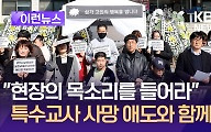 오늘(5일)오전인천시교육청앞에서인천장애인교육권연대등교육·장애관련시민사회단체들이기자회견을열고초등학교특수교사사망사건에대한진상규명을촉구했습니다.지난달24일인천미추홀구의한초등학교에서특수학급을담당하던30대교사가자택에서숨진채발견됐습니다.교육계는이교사가특수교육법상초등학교특수학급정원인6명보다많은8명을담당하면서도통합학급의특수교육대상학생6명까지수시로지도해과중한업무에시달려왔다고주장했습니다.숨진교사는임용5년차미만으로내년에결혼을앞두고있었던것으로전해졌습니다.오늘기자회견참석자들은"현장의목소리에귀기울여달라"고요구했습니다.■제보하기▷전화:02-781-1234,4444▷이메일:[email protected]▷카카오톡:'KBS제보'검색,채널추가▷카카오'마이뷰',유튜브에서KBS뉴스를구독해주세요!김세정기자([email protected])Copyright©KBS.Allrightsreserved.무단전재,재배포및이용(AI학습포함)금지