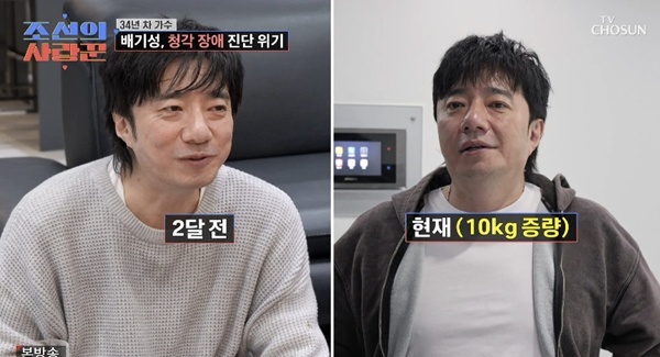 사진제공|TV조선[스포츠동아이정연기자]배기성이돌발성난청진단후3개월째소리를듣지못하고있다고고백했다.27일방송된TV조선‘조선의사랑꾼’에는배기성이출연해돌발성난청진단이후근황을공개했다.이날배기성은두달전보다10kg이늘었다고밝혔다.그는“몸은다좋아졌는데귀만안들린다”며“이비인후과와한의원등병원을네군데돌아다녔지만난청은아직회복되지않았다”고말했다.앞서배기성은2세준비중돌발성난청진단을받았다고밝힌바있다.현재오른쪽귀가들리지않는그는아내이은비가늘자신의왼쪽에앉는다고설명했다.배기성은“난청이3개월째이어지고있다.의사선생님이6개월까지안들리면장애진단을받을수있다고했다”고털어놨다.이어“장애진단을받으면인공와우수술을하거나보청기를껴야한다.보청기는조금이라도소리를인지해야가능한데,아예인지가안되면인공와우수술을해야한다고하더라”고설명했다.그는“인공와우수술을하면들을수는있지만적응기간이1년정도걸린다고했다”고말했다.가수에게치명적일수있는상황에패널들도걱정을감추지못했다.배기성은“성대가안좋으면가수생명이끝난줄알았다.그런데성대보다중요한건귀더라.잘들어야아름다운소리가나온다”고고백했다.이어“아름다운소리를듣는게그립다.양쪽으로들었을때는세상에아름다운소리가많다는걸몰랐다”고말해안타까움을안겼다.아내이은비는“그좋아하는노래를못하니까안타깝다”며눈시울을붉혔다.이정연기자[email protected]©스포츠동아.무단전재및재배포금지.