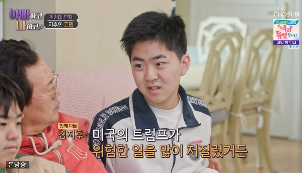 [TV리포트=한수지기자]과거'야꿍이'로알려진배우김정태의아들지후가입시고민을털어놓는가하면친구들과어울려노는변화한모습을보여훈훈함을자아냈다.22일방송된TV조선예능프로그램'아빠하고나하고'에서는김정태부부와두아들의일상이공개됐다.최근아스퍼거증후군을진단받고전문가상담을이어온지후는이날심각한표정으로하교해눈길을끌었다.귀가하자마자지후는부모님에게"공부가잘안돼"라고솔직하게털어놓았다.이어"소프트웨어마이스터고에어떻게입학해야하는지모르겠다"며고교입시에대한걱정을드러냈다.급기야"미국유학도그냥가지말까"라고털어놨다.유학을고민하는이유도남달랐다.지후는"미국의트럼프가위험한일을많이저질렀다.대통령이바뀔거라는건아는데그뒤로도위험이계속될까봐망설이게됐다"고밝혀스튜디오를놀라게했다.전현무는"중3이국제정세를논하고있다"며감탄했다.반면동생시현은"그럼다시오면된다"며심플하게형을격려해웃음을안겼다.프로그래밍기능사시험에대한불안감도고스란히드러났다.지후가"프로그래밍기능사공부가잘안된다.소마고떨어지면어떡하냐"고불안해하자어머니는"다른고등학교에가면된다"고달랬지만지후는"거기가서뭐하냐"며쉽게마음을풀지못했다.김정태는이미한번떨어진경험에지후가위축된것을알아채고"시험이부담스러워서그런가보다.떨어져도된다.너무부담갖지말고계속도전하면된다"고다독였다.지후는제작진과의인터뷰에서"다른데가도된다.지금으로도충분하다고말해주는데마음에닿아서기분이좋았다"고고백했다.부모님의격려에힘을얻은지후는"다시소마고에가고싶다"고의지를다졌고,김정태는"트럼프정책에대해서는앞으로천천히얘기해보자"고제안하며훈훈하게마무리됐다.기분이좋아진지후는"그러자구"라며방으로들어가다시학구열을불태웠다.이날방송에서는지후의달라진면모도포착됐다.동생시현의친구들이집을방문해밸런스보드게임을즐기던중지후가"나도이거해볼까?"라며관심을보인것.평소또래와어울리는데어려움을겪던지후가먼저함께하겠다는뜻을밝히자주변모두가놀라움을감추지못했다.아빠김정태의도움을받아밸런스보드에오른지후는위태위태한자세로웃음을자아냈다.김정태가"스케이트보드타듯이"라고설명하자"난스케이트보드탄적이없단말이야"라고솔직하게받아쳐폭소를안겼다.3초라는저조한기록에부끄러워하며자리를피했지만이내"꽤재밌더라.한번더해보고싶네"라고말했다.지후의변화를가장가까이서지켜본동생시현은"형이노는걸몇개월만에봤다.놀라기도하고애들도당황한것같았다.그래도같이재미있게놀았다.왠지뭔가뿌듯하고오랜만에노니까신났다"라고고백해뭉클함을더했다.MC한혜진은"상담을다녀오면서변화하고있는것같다.친구들과노는재미를계속알아갔으면좋겠다"라고따뜻한응원을보냈다.한수지기자/사진=TV조선'아빠하고나하고'Copyright©TV리포트.무단전재및재배포금지