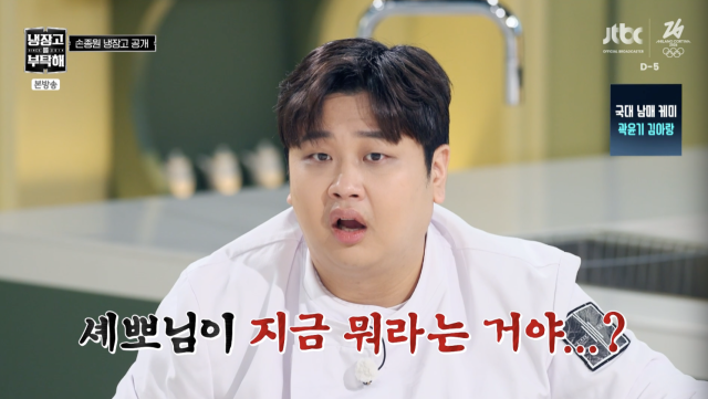 방송시청후작성된리뷰기사입니다.[OSEN=박하영기자]‘냉장고를부탁해’손종원의냉장고가최초공개됐다.1일방송된JTBC예능‘냉장고를부탁해’(이하‘냉부해’)에서는‘셰프들의파티’특집을맞아‘2026냉부어워즈’개최와더불어손종원과김풍이게스트로출연했다.이날손종원셰프의냉장고가최초공개됐다.냉장고안에는생수와탄산수가가득했고,박은영은“(재료가)너무없다”,김성주는“결벽증있는거아니냐”라고놀라워했다.손종원은“물도사실칼칼한거당길때탄산수를먹는다.기분에따라물을다르게먹는다”라며“하루에4~5L정도마신다”라고밝혔다.다른칸에는단백질음료와두유가칼각으로세워져있었다.그는“두유,단백질섞어서먹거나단거당길때는왼쪽에있는맛이다양한단백질음료를먹는다”라고설명했다.이를들은권성준은“인간미가좀..”이라고반응해웃음을자아냈다.더불어권성준은과일,야채,고기등날짜별로라벨링을붙여보관해눈길을사로잡았다.철저한자기관리면모에윤남노와권성준은“우리기준에망했다”,“먹기싫어안해안해”라고보이콧을선언했다./mint1023/@osen.co.kr[사진]‘냉장고를부탁해’방송화면캡처Copyright©OSEN.무단전재및재배포금지.