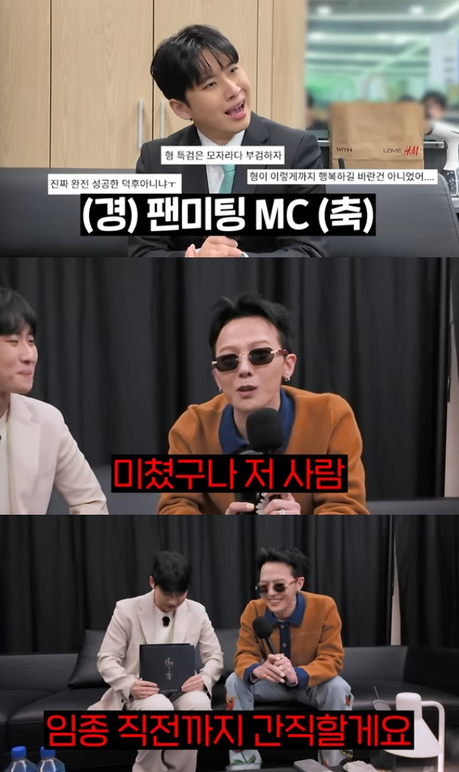 [스타뉴스|김나연기자]사진=유튜브채널미미미누크리에이터미미미누가가수지드래곤에대한팬심을표현했다.20일유튜브채널'미미미누'에는'"미미미누또울었어요?"빅뱅지드래곤(G-DRAGON)님의첫솔로팬미팅MC보고왔습니다'라는제목의영상이공개됐다.이날미미미누는최근개최된지드래곤팬미팅'2026G-DRAGON'FAM'MEETING[FAM+ILY:FAMILY:FAMILOVEYOU]'의MC를맡았다.그는"제가빅뱅에대한사랑이쭉이어져왔다.'집대성'에나간적있고,태양님의팬미팅MC로무대에서게됐고,온우주가저를도왔고,'열심히살아왔구나'라는것을인정해주는순간이다.지드래곤팬미팅MC를맡게됐다.말로형용할수없는순간이다"라고밝혔다.미미미누는지드래곤과만나게됐고,"꿈을이뤘다.신을영접했다"고감격했다.지드래곤은"쉬고있을때저에대해강의하듯이말한영상을보고처음접했다.'이친구누구지?'라고생각하게됐다.저에대해잘아시는걸보고무섭다고느꼈다"고말했다.지드래곤은"MC후보가꽤나쟁쟁했다.재석이형만(후보에)없었다"고웃었고,미미미누는"해외팬미팅일정을듣고,(스케줄)다뺐다"고팬심을전했다.또한지드래곤은미미미누에게선물을건넸고,"남은MC도잘봐달라는일종의뇌물이다.저쓰던거주니까김영란법(공직자가민간에부정청탁을하는것을금지·처벌하는청탁금지법)에해당안된다.사서주는거아니다"라고농담했다.이에미미미누는"임종직전까지간직하겠다"고기뻐했다.김나연기자[email protected]©스타뉴스&starnewskorea.com,무단전재및재배포금지