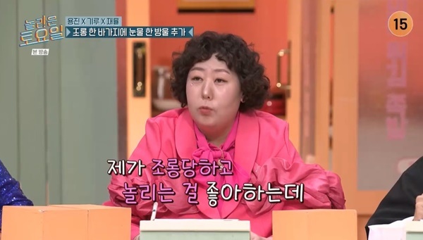 tvN‘놀라운토요일’tvN‘놀라운토요일’[뉴스엔유경상기자]신기루가세상사람들에게서운하다고토로했다.2월21일방송된tvN‘놀라운토요일’에서는코미디언이용진,신기루,이재율이출연했다.붐이“세상사람들에게서운한게있다고?”라고묻자신기루는“멤버들이제조롱을제일많이한다.대중여러분은제가조롱당해도괜찮냐.댓글이많이달렸다.더놀려야하는거아니냐.대중도저를놀려서.대장내시경소방차호스로하나요?진짜웃긴게많다”고답했다.신동엽이“거기구독자들이조롱이세더라”고말하자신기루는“입속에비둘기몇마리수납가능하냐,암바걸리냐고한다.이제는그냥재미있다”고반응했다.붐은구독자와출연자들이“서로닮아가는거”라고말했고,이용진은“약간실망인게넉살리액션이별로다.조롱가족인데뒤에서”라며넉살의리액션을꼬집었다.넉살은“신기루가무슨펠리컨도아니고”라며리액션이약했던이유를말했다.이용진은김동현에이어붐도아이아버지라조롱을못하겠다고말했고,넉살은자신도아이아버지라며억울함을토로했다.이에이재율이“넉살은아이있는어머니같다”고놀려웃음을자아냈다.(사진=tvN‘놀라운토요일’캡처)뉴스엔유경상yooks@기사제보및보도자료[email protected]ⓒ뉴스엔.무단전재&재배포금지Copyright©뉴스엔.무단전재및재배포금지.