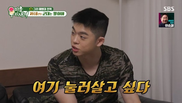 SBS‘미운우리새끼’SBS‘미운우리새끼’[뉴스엔유경상기자]그리가해병대월급을2천만원가까이모아전역했다고밝혔다.2월22일방송된SBS‘미운우리새끼’에서는김구라아들그리(김동현)해병대전역당일임원희,조진세가마중을나가축하했다.임원희는육군,조진세는의무경찰출신.그리는해병대18개월복무했고조진세는의경으로22개월복무했다며“18개월이라고들었을때되게재미있었겠다싶다”고으스댔다.임원희는“내가30개월을했다.육군1사단GOP에서근무했다”고말했다.이어임원희는“겨울에들어갔는데침을뱉으면침이얼었다.훈련병때깡통막사가있었다.100명넘게자는거다.걸프전이터져서석유를안줬다.조개탄을쓰는데온도계를보니까영하7도였다.내무반안이.뻥안치고.그런데있었다”고말했다.월급이얼마인지비교체험이이어졌다.임원희는“월급8천원,병장은월급5만원이었다”고회상했다.조진세는“의경병장을수경이라고한다.14만원이었다.괜찮았다”고말했다.그리는“해병대병장월급이150만원.적금까지합치면200만원”이라고밝혀모두를놀라게했다.조진세가“목돈을모아올수있겠다”고감탄하자그리는“2천가까이모았다.병장으로월급도많이받고하는일은적어지고.눌러살고싶다는생각을했다.마지막4주는나가서바로일없으면조금더있고싶다고생각했다”고고백했다.게스트로출연한배우홍종현은“동현이가군생활할때연락했다.태도가많이달라졌다.초반에는좀힘들어했다.나중에는잘이겨낸느낌이더라”고전했다.(사진=SBS‘미운우리새끼’캡처)뉴스엔유경상yooks@기사제보및보도자료[email protected]ⓒ뉴스엔.무단전재&재배포금지Copyright©뉴스엔.무단전재및재배포금지.
