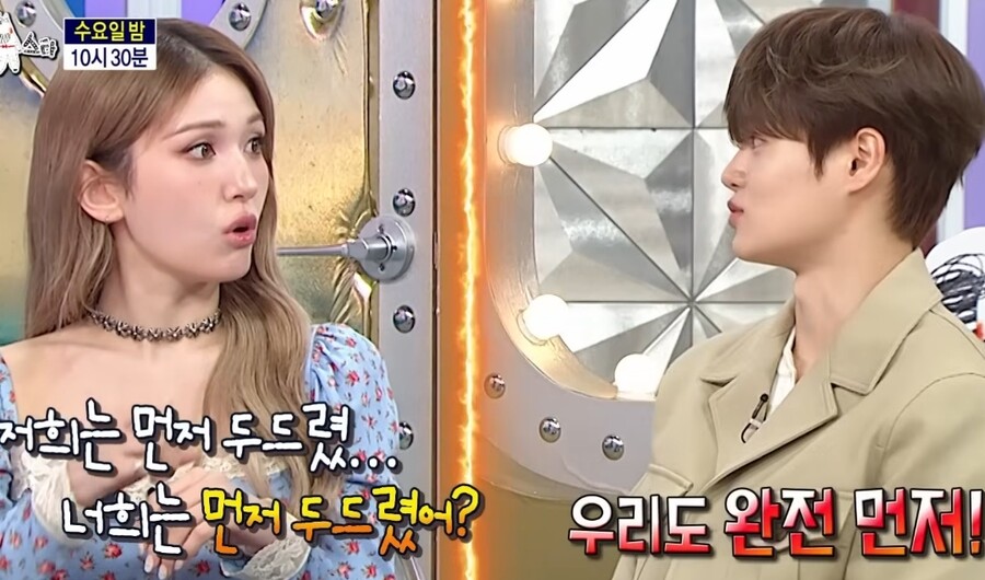 ▲아이오아이전소미와워너원이대휘가컴백을앞두고신경전을벌였다.출처|MBC‘라디오스타’예고편[스포티비뉴스=허나원기자]아이오아이전소미와워너원이대휘가컴백을앞두고신경전을벌였다.23일MBC‘라디오스타’는‘뭉쳐야뜬다!다시뭉친사람나야나나야나’라는제목의예고편을공개했다.이날전소미와이대휘는오랜만의재결합컴백을앞두고신경전을벌였다.전소미는“10주년앨범을위해(아이오아이가)뭉쳤다.봉인해제만기다리고있다”고9년만의재결합소감을전했다.이어아직발매되지않은앨범타이틀곡을부르려는모습을보여눈길을끌었다.이에질세라이대휘는워너원의‘나야나’를부르며존재감을드러냈다.그는“워너원도재결합을했다”며“박지훈을등에업고컴백한다.지훈이형을너무사랑한다”고말하며영화‘왕과사는남자’에서단종역으로사랑받고있는박지훈에대한자부심을드러냈다.전소미는“저희는진짜오랜만에뭉친거다.그런데(워너원이)갑자기저희보다먼저행보를시작했다”며이대휘에게“너희는먼저두드렸냐”고물었다.이대휘는“완전먼저두드렸다”고답했고,전소미는“그랬냐”고떨떠름한반응을보여웃음을자아냈다.또전소미가“우리는신기하게아직까지사이가너무좋다”고말하자이대휘는“우리도좋다”고받아쳐웃음을더했다.한편원조프로젝트그룹아이오아이와워너원이비슷한시기에재결합소식을전하며팬들의반가움을자아냈다.데뷔10주년을맞은아이오아이는세번째미니앨범‘아이오아이:루프’를오는5월19일발매할예정이다.또한‘2026아이오아이콘서트투어:루프’를개최하며글로벌팬들과재회한다.2019년활동종료후7년만에공식적으로재결합한워너원은오는28일공개되는새리얼리티‘워너원고:백투베이스’론칭을앞두고많은관심을받고있다.<저작권자ⓒSPOTVNEWS.무단전재및재배포금지>Copyright©스포티비뉴스.무단전재및재배포금지.