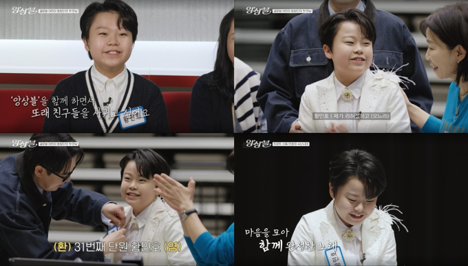 ‘앙상블’(사진=tvN)가수황민호가트로트가아닌동요로새로운도전을시작했다.황민호는지난14일첫방송된tvN'앙상블'에출연해31번째단원으로합류하며동요합창에도전했다.이날황민호는"원래어른들과같이노래를부르고오디션도봤는데방송,공연을다니다보니까학교를잘못다녀서친구를많이만나보지못했다"며"근데친구들을많이만날수있게돼서기쁘고기대감이크다"고소감을전했다.앞선오디션에서자신감넘치는모습으로극찬을받은황민호는합류직후연습에서당황하는모습을보였다.황민호는"아는곡이하나도없어서어떻게불러야할지걱정됐다"며낯선환경에고충을토로했고,무의식중에나오는트로트창법에곤란한기색을내비쳤다.황민호는생소한장르에대한부담감으로인해자신감을잃어가는모습을보였다.이때황민호를지켜보던다른친구들이작게노래를따라부르며도움을건넸고황민호가친구들과함께어우러지는모습이감동을자아냈다.황민호는"트로트만해와서동요는한번도해보지못한장르다.제가모르는노래니까평소보다주눅이들었던것같다"며"확실히저혼자불렀을때보다친구들이옆에서아주작은목소리로같이불러주는게든든했고노래부르는데에도움이됐다"고진심을전했다.이어진첫합창연습에서황민호는"어렵다"고솔직한심경을밝혔지만단원들과함께서서히호흡을맞춰가며적응하기시작했다.그러나10일만에국립중앙박물관초청공연을처음으로선보여야하는상황을마주하며다시한번긴장감에휩싸였다.이에황민호는동료단원들과연습에매진했고,합창단원으로거듭난황민호의첫공연은어떨지다음이야기에궁금증을더했다.한편,황민호가출연하는tvN'앙상블'은매주화요일밤10시10분방송된다.Copyright©bnt뉴스.무단전재,재배포및AI데이터활용금지