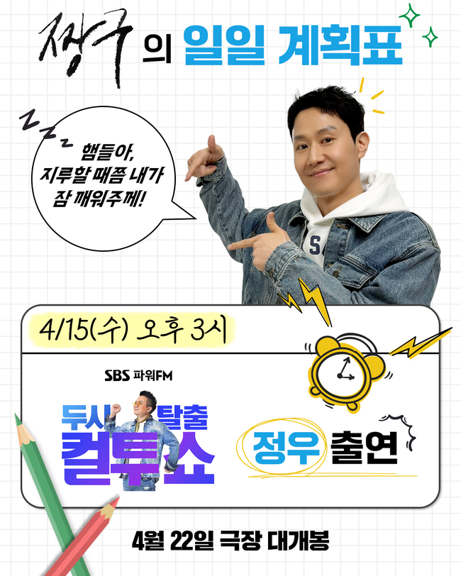 바이포엠스튜디오[뉴스엔배효주기자]영화'바람'으로'비공식천만배우'에등극한정우가신작'짱구'홍보를위해'두시탈출컬투쇼'에출연한다.영화'짱구'(감독정우,오성호)는매번꺾이고좌절해도배우가되겠다는바람하나로버티고일어서는오디션천재'짱구'(정우)의유쾌하고뜨거운도전드라마.정우는4월15일오후3시부터4시까지생방송으로진행되는SBS파워FM'두시탈출컬투쇼'초대석에출연한다.개그맨강재준도함께해한층더활기찬분위기를더할전망이다.특히정우는'짱구'에대한소개는물론촬영비하인드,현장에피소드등다양한이야기를전하며작품의매력을한층더생생하게전달할예정이다.여기에특유의재치있는부산사투리와솔직한입담으로현장방청객들과의호흡까지더해지며색다른재미를선사할것으로기대를모은다.한편,'짱구'는4월22일전국극장에서개봉한다.뉴스엔배효주hyo@기사제보및보도자료[email protected]ⓒ뉴스엔.무단전재&재배포금지Copyright©뉴스엔.무단전재및재배포금지.