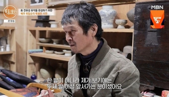 최일순.사진ㅣMBN‘특종세상’방송캡처배우최일순이고(故)전유성을향한그리움을전했다.23일오후방송된MBN‘특종세상’에서는강원도산골에서생활중인최일순의근황이전파를탔다.이날방송에서는두사람의오랜인연이조명됐다.최일순은전유성과30년넘게관계를이어왔으며,그의마지막작품에서함께호흡을맞췄다.그는“선배님이먼저함께하자고제안해주셨고,이후캐스팅을진행하게됐다”고회상했다.하지만작품촬영당시전유성의건강상태는좋지않았던것으로전해졌다.최일순은“응급실을세번이상오가셨다”며“이작품이유작이될줄은몰랐다”고안타까움을드러냈다.그는이어“지금도계속작품을보고있으면살아계신것같다”며고인을향한그리움을전했다.최일순이연출한작품‘겨울소풍-땅끝에선사람들’은전유성의마지막참여작으로,그가생전에남긴필사원고에는“바람이불어온다.예고도없이.피할수없다”는문장이담겨깊은여운을남겼다.최일순은“늘앞서나가던분이었다”며“폐가되지않도록최선을다해작업에임했다”고전했다.[지승훈스타투데이기자]Copyright©스타투데이.무단전재,재배포및AI학습이용금지