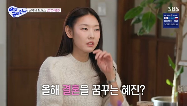 SBS‘아니근데진짜’SBS‘아니근데진짜’[뉴스엔유경상기자]1983년3월생으로만42세한혜진이결혼하고싶다며공개연애도가능하다고말했다.2월23일방송된SBS‘아니근데진짜’에서는모델한혜진이출연했다.탁재훈은한혜진에게“우연히봤는데소개팅많이하고다니던데?연하남하고?”라고질문했고,한혜진은“연상이랑만나면나이가너무올라간다”고답하고“죄송하다”고사과했다.탁재훈은“죽으면다하늘로올라간다”고반응했다.이어이수지가20살연상남이좋은지10살연하남이좋은지질문하자한혜진은“나이는상관없다.굳이두명있다고하면연하로하겠다.제가운동하는걸좋아해서10살많으면등산도못하고러닝도못하고”라고이유를댔다.카이는“저는골프안친다.러닝한다.5km위주로.1km페이스가5분”이라고밝혔고탁재훈은“전빠르게걷기한다”며지지않았다.뒤이어탁재훈은“먼저대시하는편이냐.기다리는편이냐”고질문하자한혜진은“예전엔대시안했다고생각했는데나이들어생각해보니했더라.그때는몰랐는데.제가먼저하지,기다리지않는것같다”고말했다.탁재훈이“사귀게되면또공개가될수있는데어떻게생각하냐”고묻자한혜진은“감당가능하겠냐.저는가능하다”며공개연애에도쿨한모습을보였다.탁재훈은“하루만생각해보겠다”며말을돌려웃음을안겼다.또탁재훈이“올해결혼을하고싶다고?”라고묻자한혜진은“결혼은계속하고싶었다.지금까지못한거”라고답했다.이상민은한혜진에대해“솔직함이무기다.무기로상대를찌를수있다”고말했지만한혜진은“저생각보다안솔직하다.진짜크리티컬한건아예말안한다.그냥헤어진다.나로인해바뀌지않을걸알기때문에”라고말했다.탁재훈이“시도는해봐야하지않냐”고묻자한혜진은“어릴때많이해봤다.안되더라”고경험담을꺼냈다.(사진=SBS‘아니근데진짜’캡처)뉴스엔유경상yooks@기사제보및보도자료[email protected]ⓒ뉴스엔.무단전재&재배포금지Copyright©뉴스엔.무단전재및재배포금지.