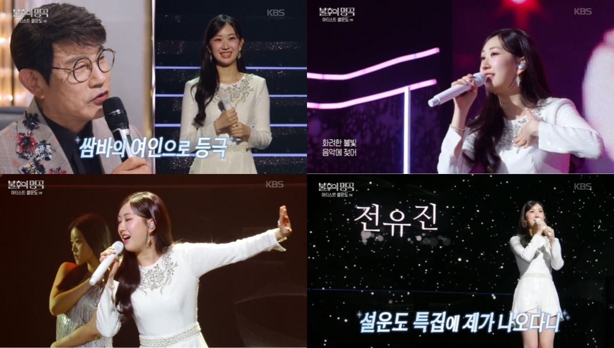 KBS2‘불후의명곡’방송캡처가수전유진이‘불후의명곡’에출연해화려한퍼포먼스로시청자들을사로잡았다.전유진은지난21일저녁방송된KBS2‘불후의명곡’745회설운도특집에출연해설운도의명곡‘쌈바의여인’을자신만의스타일로재해석해선보였다.그동안보여주지않았던화려한퍼포먼스로시청자들의눈과귀를동시에만족시켰다.무대시작전,전유진은“지금까지여러번불후의명곡에출연했지만퍼포먼스무대를보여준적이없었다”며“이번에는디바콘셉트로화려한퍼포먼스를준비했다”고밝혔다.이어“오늘은꼭설운도선배님께수석을받겠다”며완성도높은무대를향한각오를드러냈다.세번째순서로무대에오른전유진은매혹적인보컬로무대를열었다.뒤이어댄서들의등장으로분위기가경쾌하게반전됐고,관객들을순식간에몰입시켰다.‘쌈바의여인’과어울리는안무와함께무대를완성한전유진은‘디바’로서의화려한변신을선보였다.무대를지켜본설운도는“전유진씨를쌈바의여인으로불러도손색이없을것같다.너무행복한무대였다”며뿌듯한마음을내보였다.천록담과의대결에서403점이라는높은점수로1승을거둔전유진은“질줄알았는데이겼다”며놀라움과기쁨이섞인소감을전했다.설운도는무대뒤에서도“어쩜그렇게춤을잘추냐.최고다”라며극찬을아끼지않았고,퍼포먼스와가창을모두아우른전유진에대해높은만족감을드러냈다.새로운변신으로인정받은전유진은한층넓어진음악적스펙트럼과무대장악력을다시한번입증했다.전유진은포항해변전국가요제출신으로2020년3월디지털싱글‘사랑...하시렵니까?’를발매하며데뷔했다.이후‘현역가왕’에서활약하며실력있는가창력과짙은감성으로최종1위에등극했다.남녀노소전연령층의사랑을받으며차세대트로트여성가수의대표주자로자리매김하고있다.전유진신곡‘하루만나의꿈속에다녀가세요’는지난1월각종음원플랫폼을통해공개됐으며,활발한활동을이어가고있다.손봉석기자[email protected]©스포츠경향.무단전재및재배포금지.