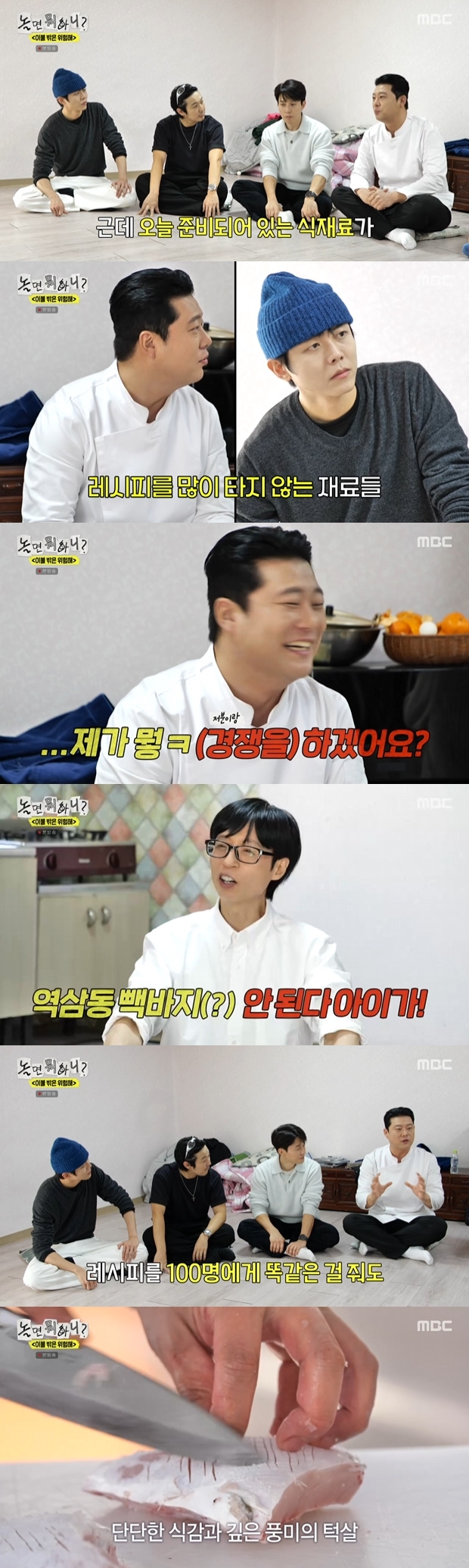 티브이데일리포토[티브이데일리김진석기자]'놀면뭐하니?'장호준셰프가자신감을드러냈다.7일방송된MBC예능프로그램'놀면뭐하니?'에선'이불밖은위험해'특집이펼쳐졌다.허경환의통영친구들이보내준싱싱한해산물로만든요리를맛보는유재석,하하,허경환,주우재,김광규의모습이그려졌다.이날멤버들은장호준셰프를찾아갔다.유재석은"허경환과학교선후배라고하더라"고하자장호준은"고등학교두해위선배다"라고말했다.허경환도"우리여동생하고친구다"라고하자장호준은"저도통영의아들"이라소개했다.장호준셰프는똑같은레시피로주우재와대결한다는사실에피식웃으며"제분야요리도준비했다.제가뭐경쟁을하겠냐"라고말했다.이에유재석은"역삼동백바지안된다"라며거들었고,주우재는"레시피도따라하고넣는양과타이밍까지따라할것이다"라며각오를전했다.이후장호준셰프는방어구이와바다장어튀김,겨울제출물메기탕을선보이며멤버들의감탄을이끌어냈다.[티브이데일리김진석기자[email protected]/사진=MBC'놀면뭐하니']놀면뭐하니[Copyrightⓒ*세계속에新한류를*연예전문온라인미디어티브이데일리(www.tvdaily.co.kr)/무단전재및재배포금지]Copyright©티브이데일리.무단전재및재배포금지.