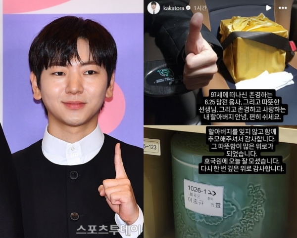 이주승/사진=DB,SNS[스포츠투데이김태형기자]조부상을겪은배우이주승이위로해준팬들에게감사인사를전했다.24일이주승은자신의SNS스토리에"97세에떠나신존경하는6·25참전용사,그리고따뜻한선생님,그리고존경하고사랑하는내할아버지안녕,편히쉬세요"라는글을남겼다.이어"할아버지를잊지않고함께추모해주셔서감사합니다.그따뜻함이많은위로가됐습니다.호국원에오늘잘모셨습니다.다시한번깊은위로감사합니다"라고덧붙였다.이주승의할아버지는지난22일세상을떠났다.향년97세.고인은6·25전쟁참전용사이자국가유공자다.전쟁후엔초등학교교사로근무했다.이주승은지난2024년MBC'나혼자산다'에할아버지와함께출연한바있다.[스포츠투데이김태형기자[email protected]]Copyright©스포츠투데이.무단전재및재배포금지.