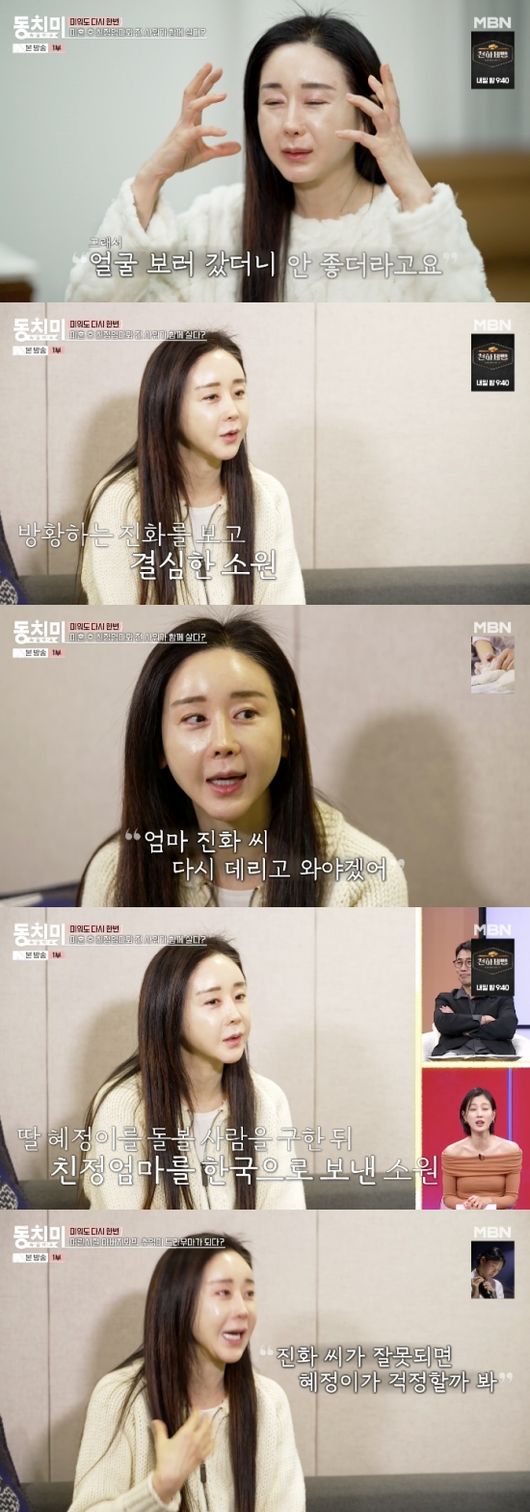 방송시청후작성된리뷰기사입니다.[OSEN=임혜영기자]함소원이친정어머니대신진화를선택하게된이유를밝혔다.7일방송된MBN‘속풀이쇼동치미’에서는‘미워도다시한번’이라는주제로이야기를나누었다.함소원은“(이혼후)진화씨가방콕에가서SNS에술먹는사진을올리니저도걱정이됐다.얼굴을보러갔더니안좋더라.그상태에서헤어지면힘드니다시데리고와야겠다고생각했다”라고말문을열었다.이어“(같이살고있던)엄마는(이이야기를듣고)한국으로가겠다고하더라.이모를구하고어머니를한국으로보냈다”라고말했다.함소원은어머니대신진화를선택한것에대해“아이아빠가잘못되면안된다는책임감이있었다.진화씨가잘못되면딸이걱정할까봐.딸과아빠는또다르다”라고설명했다.함소원은“상담을하면서진화씨가아빠가더많이닮았다는걸느꼈다.저는혜정이에게아빠를빼앗고싶지않다”라도자신의생각을전했다./[email protected][사진]MBN‘속풀이쇼동치미’Copyright©OSEN.무단전재및재배포금지.