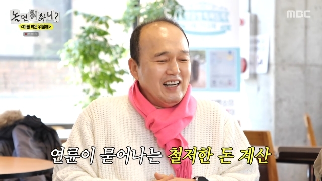 MBC‘놀면뭐하니?’캡처MBC‘놀면뭐하니?’캡처[뉴스엔서유나기자]배우김광규가방송인유재석에게철저한돈계산을보여줬다.2월7일방송된MBC예능'놀면뭐하니?'(이하'놀뭐')315회에서는유재석,하하,주우재,허경환이한파특집을김광규와함께했다.이날김광규의결혼과함께축의금이화두에올랐다.평소얼굴만알면10만원,친하면30만원의축의금을한다는김광규는유재석의자식이결혼하면얼마를할생각이냐는질문에통크게"100만원"을불렀다.이에유재석은"내가은퇴를했어"라고새로운조건을깔았다.방송에영향력이전혀없을경우엔어떻게하겠냐는것.이에김광규는가차없이"그러면30만원으로"라며금액을줄여웃음을자아냈다.연륜이묻어나는철저한돈계산을보여준김광규는"야,현역이랑같냐"고외쳤고유재석은"마음의준비를해놔야겠다"고너스레떨었다.하하는"완전비즈니스네"라며김광규의철저함에감탄했다.뉴스엔서유나stranger77@기사제보및보도자료[email protected]ⓒ뉴스엔.무단전재&재배포금지Copyright©뉴스엔.무단전재및재배포금지.