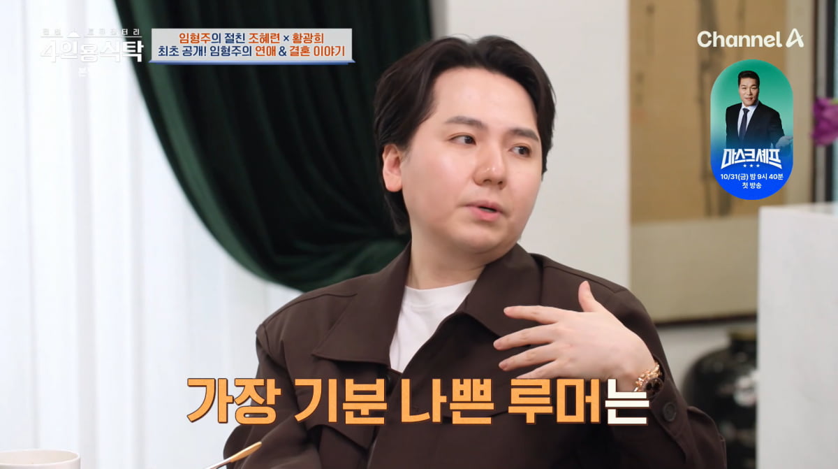 [텐아시아=김은정기자]사진=채널A'4인용식탁''4인용식탁'암형주가'거세설'에분노했다.6일방송된채널A'절친토큐멘터리-4인용식탁'은팝페라테너임형주편으로절친조혜련,황광희그리고MC박경림이함께했다.이날임형주는4층대저택을공개했다.1층과2층은팝페라전용공연장및사무실,주차공간으로눈길을끌었다.팝페라하우스'임형주홀'에대해그는"후배들위해만들었다"고밝혔다.사진=채널A'4인용식탁'사진=채널A'4인용식탁'사진=채널A'4인용식탁'사진=채널A'4인용식탁'3,4층은주거공간으로약20년인연인조혜련도처음방문했다며감탄했다.조혜련은"3살터울여동생이있는건알았지만,16세,17세어린남동생들을보고'형주가애를낳았나'생각했다"고밝혀웃음을안겼다.아이돌출신황광희는임형주와절친이된이유에대해"'스타킹'출연자이름을보고대기실에찾아가냅다'하월가'불렀다.용기내서전화번호달라고했다"고전했다.12살어린나이에데뷔한임형주는의도없이다가온광희와14년째가깝게지내고있다고.두사람은2017년3월13일같은날입대하며남다른인연을자랑하기도했다.사진=채널A'4인용식탁'사진=채널A'4인용식탁'사진=채널A'4인용식탁'사진=채널A'4인용식탁'고운미모와말투에수많은루머에시달렸던임형주는"제일기분나빴던루머는'고자설'이다.내가고운목소리유지하려고일본가서화학적거세를했다고하더라"며분개했다.이어"내가남성성을없애는주사를일본나고야에가서맞았다고하더라.루머내용도구체적이었다"면서"나는문제없다.고자는군대를못간다"고'군필'을강조했다."모태솔로는아니"라고고백한임형주는"연애경험은4~5번인데,대만화교3세,일본배우겸뮤지션등을만났다"고이야기했다.황광희는"항상저렇게잘난척을한다.여동생이지나간사랑오빠만붙잡고있다고했다"고폭로하며"나한테도소개해달라고한다"고말했다.39세미혼인임형주는"원래연상취향인데,이제는연하가좋더라"면서"주변을보면다아이아빠가되어있더라.나도아이도낳고살고싶다"고전했다.김은정텐아시아기자[email protected]©텐아시아.무단전재및재배포금지.