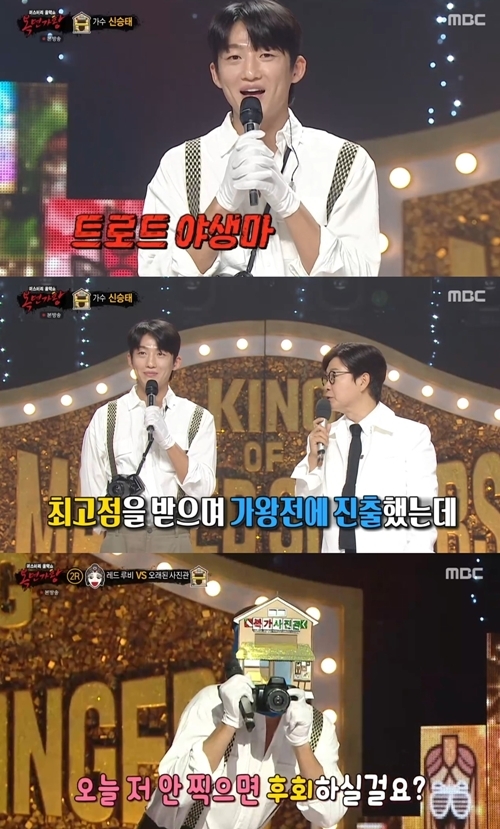 '복면가왕'에출연한신승태.사진=MBC방송화면(엑스포츠뉴스문채영기자)'복면가왕'에신승태가출연했다.5일방송된MBC'복면가왕'에서는복면가수들의무대가공개됐다.이날방송에서가왕에도전했던오래된사진관이영혼을울리는피아노에게패배해정체가공개됐다.오래된사진관은가수신승태였다.신승태는"가면쓰면덜떨린다고다른가수들이그랬는데,저는오늘너무떨렸다.오늘너무좋은경험이었고,제노래잘들어주셔서고맙다"라며출연소감을전했다.김성주는"신승태씨는트로트가수이기전에'과천전국경기소리경창대회'에서명창부대상을수상한실력파소리꾼이다.국악을하다가트로트의길을전환을했는데그쪽으로이끌어준은인이있다고?"라고질문했다.'복면가왕'방송화면.사진=MBC신승태는"제가어렸을때부터트로트가수가꿈이었다.할머니랑살면서트로트랑민요를많이듣고살면서'나는꼭트로트가수가돼야겠다'라고생각만가지고있었다.송가인씨가친구인데송가인씨가너무잘됐다.송가인씨가'너잘할것같다.한번해봐라'라고해서도전하게됐다"라고설명했다.이어김성주는"신승태씨가트로트가수로알려지기전에BTS보다먼저한국인최초로미국공영방송'타이니데스크(TinyDesk)'에퓨전국악밴드씽씽으로출연을해서화제를모았다.그때출연했던영상조회수가지금900만회다"라고밝혔다.'복면가왕'방송화면.사진=MBC신승태는"사실처음에는깔끔하게정장을입고힐정도만신었는데,많은분들이공연을보고너무좋아하시더라.그래서조금더하게되고,어울리는옷들을사서입혀주고,망사스타킹을신었다"라며당시를회상했다.이에김성주가"멤버들끼리경쟁이붙었네"라고말하자,신승태는"맞다.서로그랬다"라고답해웃음을자아냈다.신승태의절친으로알려진손태진은"사실여기를파티장으로만들라고하면순간적으로만들수있는사람이다"라며신승태의능력을높이샀다.또앞으로의목표를묻자,신승태는"저는이제시작한가수니까앞으로들어오는건뭐든지할생각이다.많이찾아달라.시간이되는한힘이되는한어디든지달려가겠다"라며포부를밝혔다.사진=MBC방송화면문채영기자[email protected]©엑스포츠뉴스.무단전재및재배포금지.