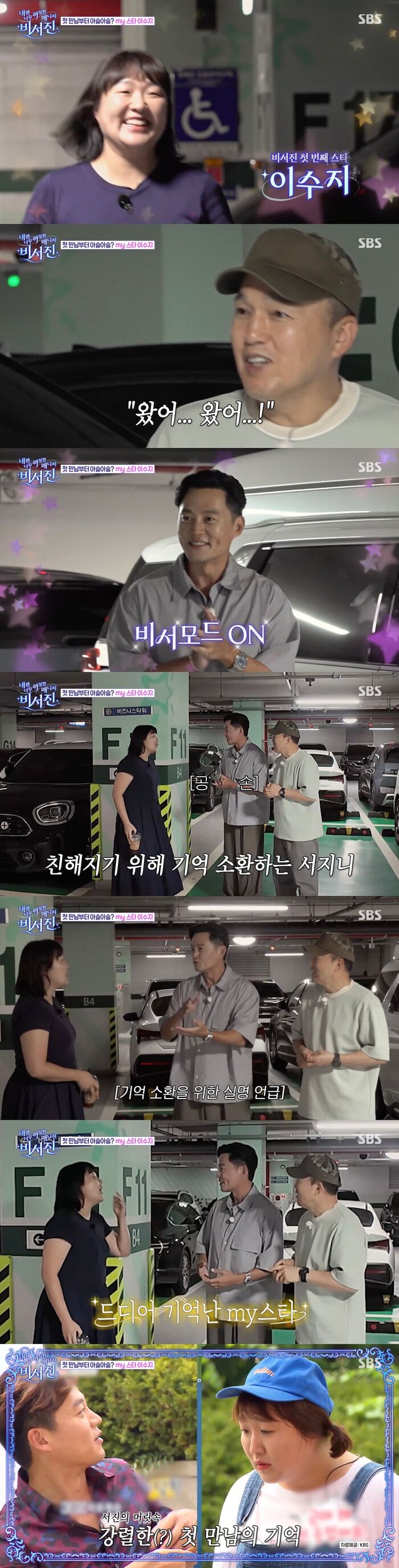 [SBS연예뉴스|김효정에디터]이서진이이수지와의인연을언급했다.3일방송된SBS'내겐너무까칠한매니저-비서진'(이하'비서진')에서는매니저에도전한이서진과김광규의모습이그려졌다.이날방송에서이서진과김광규는스타이수지와처음으로만났다.긴장한얼굴로인사를나누던세사람.그런데이때이서진은"우리만난적있잖아요?"라며반갑게인사했다.이에이수지는"아니요.없어요"라고답했다.그러자이서진은"KBS에서녹화를할때였는데개콘멤버들이다나왔다.그때이수지씨도같이나왔다"라며당시상황을설명했다.그제야생각이난이수지는"아죄송해요.생각났어요"라며"만났다고하길래저는잠깐만났던오빠였나그렇게생각했다"라고능청을떨어서폭소를자아냈다.그리고이때당시만났던두사람의자료화면이공개되어눈길을끌었다.Copyright©CopyrightⓒSBS.Allrightsreserved.무단전재,재배포및AI학습이용금지