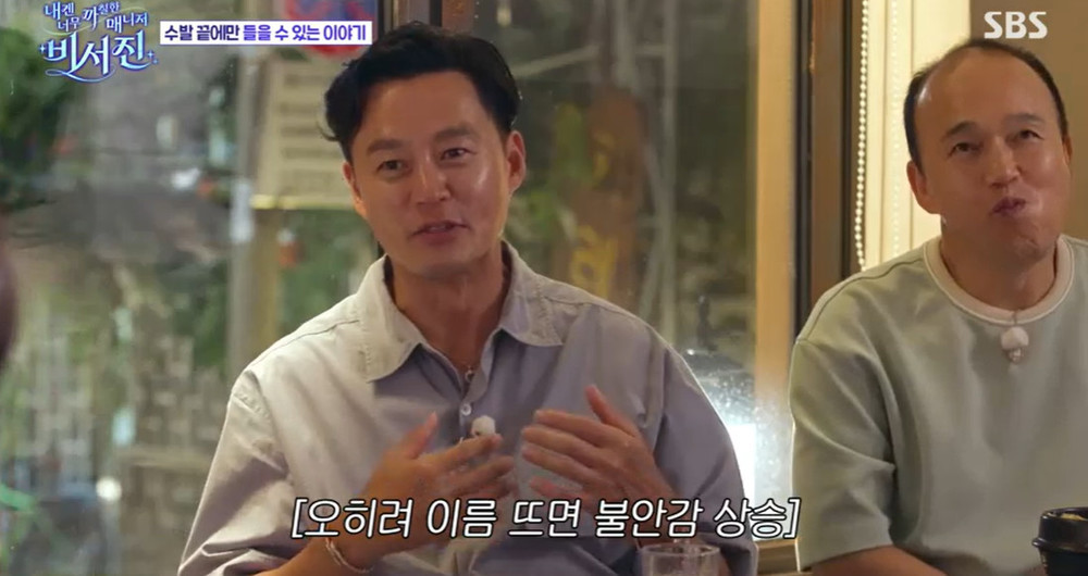 [스타뉴스|김정주기자]/사진=SBS새예능프로그램'내겐너무까칠한매니저-비서진'배우이서진이대세개그우먼이수지의열정에감탄했다.3일첫방송된SBS새예능프로그램'내겐너무까칠한매니저-비서진'에서는'부캐의신'이자예능대세로떠오른이수지가첫'My스타'로등장했다.이서진과김광규는래퍼'햄부기'로변신한이수지의하루를밀착케어했다.이날이서진은'햄부기'로열정적인연기를선보이는이수지를보며"정말열심히한다.크리에이티브하지않으면안되는거다.대단하다.내가보기엔하루종일계속일생각만할거다"라고추켜세웠다.촬영을마친세사람은고깃집에서회식하며회포를풀었다.이때이서진은"네가탑이야.요즘광고도많이찍고축하해"라고격려했다.이에이수지는"이게끝이있다는걸알아서이시간을제대로보내려고한다"며"유효기간이있다는걸안다"라고겸손한모습을보였다.그러자이서진은"그동안쌓아온게많기때문에잘버틸수있는거다.쌓아온게없는애들이잘되면연예인병에걸린다"라고말했다./사진=SBS새예능프로그램'내겐너무까칠한매니저-비서진'그는연예인병의체크리스트로'아침마다내이름을검색한다'를제일먼저꼽았다.이서진은"옛날에는내이름이하루라도안나오면불안했다.지금은내이름이언론에안나왔으면좋겠다.'내가사고쳤나?'싶어서겁난다"라고밝혀웃음을자아냈다.이서진은또"드라마가잘되면이제영화로간다"며'더있어보이는일만하고싶어한다','식당가면자꾸룸으로들어간다'등을체크리스트에올렸다.이를듣던김광규는세손가락을모두접어모두를폭소케했다.이서진은"아직도(연예인병에)걸려있어?안걸릴사람이걸리면더문제다"라고쏘아붙여웃음을안겼다.김정주기자[email protected]©스타뉴스&starnewskorea.com,무단전재및재배포금지