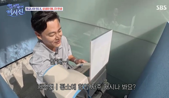 SBS‘내겐너무까칠한매니저-비서진’SBS‘내겐너무까칠한매니저-비서진’SBS‘내겐너무까칠한매니저-비서진’[뉴스엔하지원기자]배우이서진이매니저로첫출근하며은근한긴장감을드러냈다.10월3일SBS‘내겐너무까칠한매니저-비서진’(이하‘비서진’)이첫방송됐다.'비서진'은배우이서진과김광규가‘일일매니저’가되어스타의하루를케어하는밀착수발로드토크쇼다.첫번째My스타주인공으로는예능대세이수지가등장했다.이서진은SBS로비에서혈압을측정하며녹화를시작했다.제작진이“평소에혈압자주재냐”라고묻자이서진은“안잰다.원래혈압에문제가없다”며자신감을보였다.그러나예상과달리결과는높게나왔다.이서진은당황한듯“너무높은데?고혈압전단계인데?”라고말해웃음을자아냈다.제작진은“첫녹화라서?”며분위기를풀었다.뉴스엔하지원oni1222@기사제보및보도자료[email protected]ⓒ뉴스엔.무단전재&재배포금지Copyright©뉴스엔.무단전재및재배포금지.