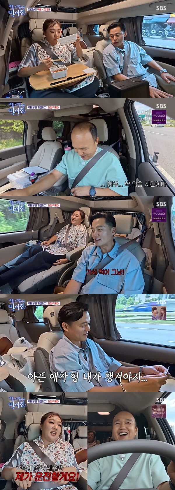 사진=SBS[스포츠투데이김태형기자]이수지매니저김광규가오히려수발이필요한모습으로웃음을안겼다.3일첫방송된SBS'내겐너무까칠한매니저-비서진'에는이서진,김광규가이수지의매니저로변신한모습이그려졌다.이날김광규가운전을하는가운데,이수지는뒷좌석에서순댓국을먹었다.차가잠깐멈춘사이이서진과김광규의시선이일제히이수지에게향했다.이수지가"드시고싶으세요?"라고묻자,이서진은시선을피하며"아니야.잘먹고있나본거야.안흘리고잘먹나"라고답했다.이서진은제작진앞에서"나는차에서순댓국먹는건묘기대행진이라고생각해.차에서순댓국을먹는다는건상상도할수없는일"이라고털어놔웃음을안겼다.김광규는운전중눈치를보더니"식사중에미안한데유턴을한번해야될것같아"라며"영동대교가더빠르다고바뀌었어"라고말했다.그는이번엔내비게이션이말썽을일으킨다며약봉지를까달라고부탁했다.이수지는"좀자려고했는데"라며,급기야"우측에잠깐세우면제가운전할게요"라고했다.김광규는오히려수발이필요한내일모레환갑의면모로웃음을자아냈다.그모습에이수지는"매니저가필요한두분이매니저를하시니재밌네요"라며"가족들보고싶다.가끔힘들때그런생각해요"라고한숨을쉬었다.[스포츠투데이김태형기자[email protected]]Copyright©스포츠투데이.무단전재및재배포금지.