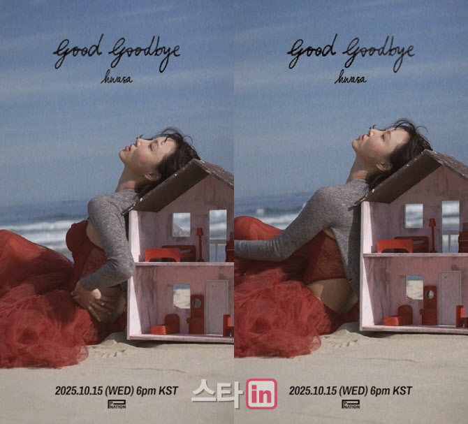 올해첫신곡…SNS에티저영상공개[이데일리스타in김현식기자]걸그룹마마무멤버인가수화사(HWASA)가오는15일오후각종온라인음원사이트를통해신곡‘굿굿바이’(GoodGoodbye)를발매한다고소속사피네이션이2일밝혔다.피네이션은공식사회관계망서비스(SNS)채널에화사의컴백을알리는티저영상을게재해팬들의이목을끌었다.이영상에는바닷가모래사장위에앉아있는화사의모습이담겼다.화사는미니어처로제작된집에기댄채아련하면서도서정적인분위기를자아내신곡에대한궁금증을높였다.‘굿굿바이’는화사가올해처음선보이는신곡이다.화사는올해시애틀,오클랜드,로스앤젤레스,댈러스,휴스턴,애틀랜타,워싱턴D.C,브루클린,보스턴,토론토,시카고등북미11개도시와태국방콕에서투어공연을펼치며바쁜일정을소화했다.아울러KBS2TV‘나라는가수인스페인’으로시청자들에게근황을알렸다.김현식([email protected])Copyright©이데일리.무단전재및재배포금지.