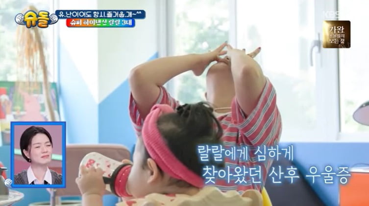 [텐아시아=조나연기자]개그우먼랄랄이산후우울증을겪었던경험을솔직하게고백했다.그는"딸도싫고하혈까지했다"며"엄마생각이많이났다"고밝히며힘들었던육아에어머니의위로가큰힘이되었음을전했다.1일방송된KBS2TV'슈퍼맨이돌아왔다'에서는랄랄과딸서빈양의일상이공개됐다.이날방송에서랄랄은어머니와딸서빈과함께맛집을찾았다.랄랄의어머니는딸이유튜브를처음시작하던때를떠올렸다.그는"처음에는딸이게임중독인줄알았다"며걱정됐던당시를떠올렸다.이어랄랄의어머니는"나는우리딸이정말자랑스럽다.댓글중에'명화씨때문에하루하루살아간다'는글도있었다.우리딸덕분에사람들이살맛이난다고하는걸보니뿌듯하다"고말했다.사진=KBS2TV'슈퍼맨이돌아왔다'그러나"근데엄마얘기들어봐라.새벽까지잠도못자니까걱정된다"고쉬지않고일하는딸을걱정하기도했다.어머니의걱정은현실이었다.랄랄은산후우울증으로인해하루하루가괴로웠던당시를회상하며"호르몬변화를몰라서태어나서처음으로뼈가시리고하혈하고그러니까,임신중에도한번도못쉬었다"며"그래도책임감이들었다.또엄마가많이생각났다"고떠올렸다.랄랄의어머니는"'엄마는유라말고는다필요없다.엄마는죽고나서도딸이힘들면천국을다때려부수더라도내가데려올거야'라고말했다.딸이런엄마가있어행복하다고하더라"고말해감동을안겼다.조나연텐아시아기자[email protected]©텐아시아.무단전재및재배포금지.