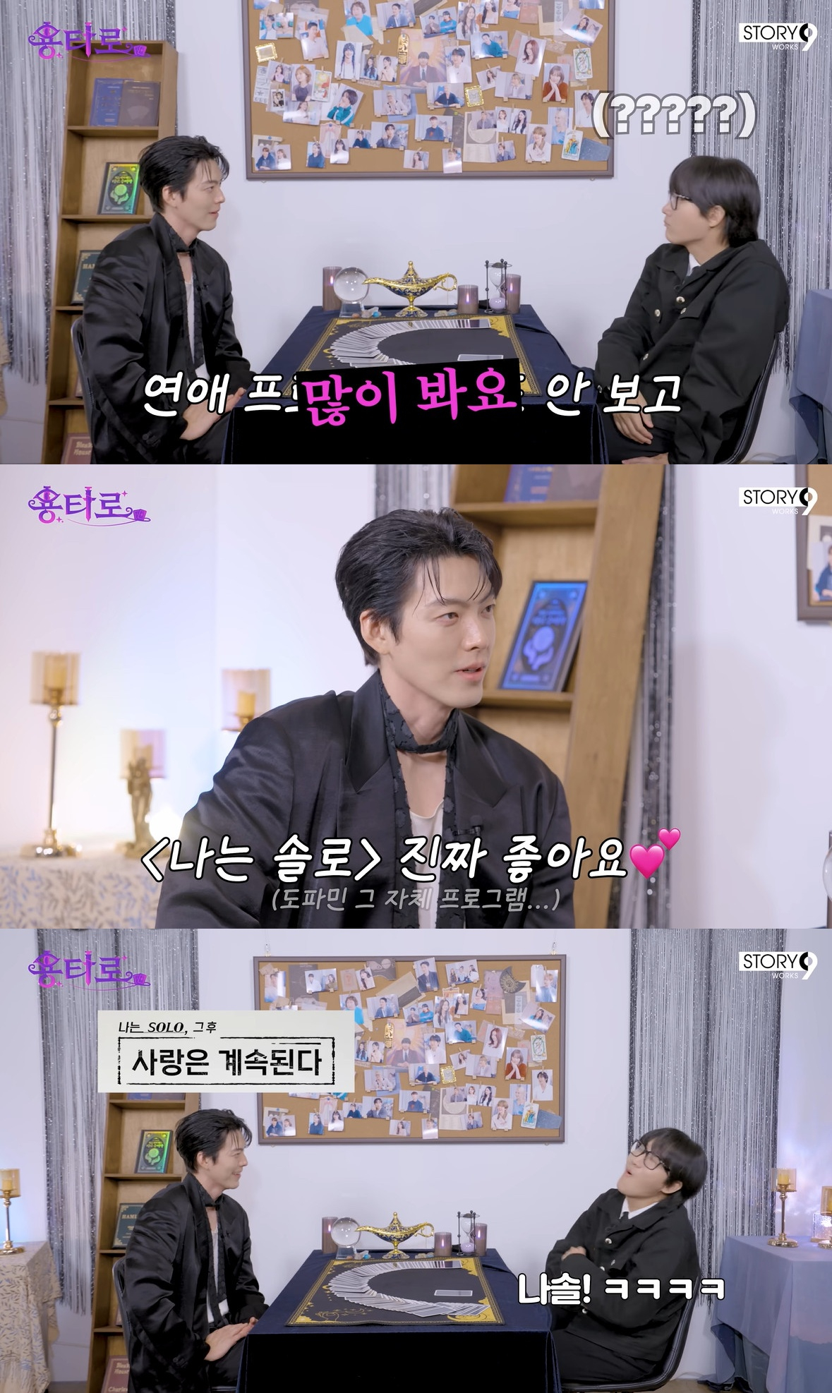 [스타뉴스|안윤지기자]/사진=유튜브채널'이용진유튜브'영상캡처배우김우빈이SBS플러스,ENA'나는솔로'에대한애정을보였다.1일유튜브채널'이용진유튜브'에서는"타로보다가심장부여잡은심쿵유발자김우빈의용타로점결과는?"란제목의영상이게재됐다.이날이용진은"요즘에푹빠진거있나,연애프로그램많이보냐"라고묻자,김우빈은"'나는솔로'진짜좋아한다.'나솔사계'.진짜같은걸좋아한다"라고말해놀라움을자아냈다.이용진이"'나는솔로'에서나오는술자리분위기같은걸좋아하나보다"라고하자,김우빈은"빌런이빨리나왔으면좋겠다"라고말해폭소케했다.또한이용진은"(김우빈은)광수아니면영식일거같은데,영식이가깝다.비교적키가다들크지않나"라고하자,그도동의했다.이어김우빈은"최근에제일재밌게본건'모태솔로지만연애는하고싶어'다.너무재밌다.저희메이크업하는친구가모태솔로다.그래서나가보라고제안도했다.'환승연애'도시즌1은봤다"라고전했다.안윤지기자[email protected]©스타뉴스&starnewskorea.com,무단전재및재배포금지