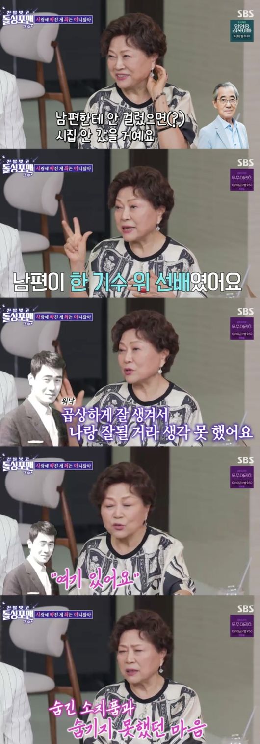 <방송시청후작성된리뷰기사입니다.>[OSEN=임혜영기자]김용림이故남일우와의첫만남에대해회상했다.30일방송된SBS’신발벗고돌싱포맨’에는김용림,서권순,이관희가출연했다.김용림은고인이된남편남일우에대해“첫사랑이다.그남자한테안걸렸으면시집안갔을것이다.남편은(여성을)여럿만났다”라고고백했다.김용림은“내가KBS성우로들어갔는데남편이한기수위선배였다.그남자가멀끔하게잘생겼다.난부잣집아들인줄알았다.워낙곱게생겨서나같은여자는안좋아할줄알았다”라고설명했다.이어“그당시라디오쉬는시간마다뜨개질을했다.양산도맨날없어지는것이다.소지품이맨날없어졌다.알고보니남편이감춰둔것이었다.말이없어서관심도없는줄알았는데본인일이끝났는데도남아있다가내가물건을찾으면갖다주더라”라고덧붙였다.그렇게두사람은가까워지게되었고부부가되었다.부부가된이후김용림은남일우의엄마역할연기를한적도있다고말했다.김용림은“젊을때엄마역을주로했다.남일우의엄마역을하라더라.그때가신혼이었다.절대안한다했는데작가가김용림이아니면안찍겠다고했다더라.할수없이하게됐다.내앞에서‘어마마마’하는데난거만하게앉아서‘세자’이러고있었다”라고말해웃음을자아냈다.김용림은남편과의에피소드를털어놓기도.그는“내가52살에남편이통행금지를하더라.내가하도3차까지놀다오니까”라고말해모두를놀라게했다.이어“1차까지만하고오라더라.12시에들어갔는데문을안열어주더라”라고덧붙였고탁재훈은“날라리였다”라고농담을건넸다./[email protected][사진]SBS’신발벗고돌싱포맨’Copyright©OSEN.무단전재및재배포금지.
