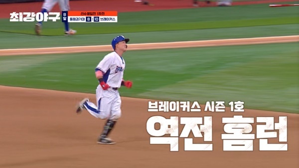 JTBC‘최강야구’JTBC‘최강야구’JTBC‘최강야구’[뉴스엔유경상기자]브레이커스가‘최강야구2025’첫경기에서극적인승리했다.이종범감독의신의한수,강민국이역전홈런을터트리며승리의주역이됐다.9월29일방송된JTBC‘최강야구’에서는브레이커스와동원과기대의경기가계속됐다.이번시즌첫경기는브레이커스가최강의몰입도를보이며7회초까지승기를잡았지만7:5스코어가7:8로뒤집히며전세가역전됐다.주장김태균이“처음처럼하나씩보자”며팀원들을다독였지만좀처럼분위기반전의기회가오지않았다.그렇게브레이커스의위기가이어지던중에8회말기적같은역전홈런이터졌다.강민국이시즌첫홈런을치며10:8로역전한것.브레이커스선수들모두가환호하며기뻐했고강민국은이종범감독에게달려가포옹했다.이종범감독이“나이스배팅”이라고칭찬했고,강민국은관중석에있던아내와딸에게달려가기쁨을나눴다.심수창코치는강민국에게“민국아고맙다”고말하고이종범감독에게“감독님9번타순이신의한수”라고말했다.이종범은“지가친거지.잘쳤다”고응수했다.이종범감독은연습때부터강민국을직접지도했고강민국은누구보다열심히연습했다.경기전에이종범감독은강민국에게9번타순을주며“이게신의한수가됐으면좋겠다”고말하기도했다.이종범의말대로강민국이신의한수가됐다.강민국은KBO통산홈런1개.브레이커스개막전에서기적같은역전홈런을추가했다.강민국은“제가스포트라이트받는선수가아니었는데저의우상인감독님이저를라인업에넣어주고,환호해주고,안아주고.내가야구를하길잘했구나감개무량하다”고말했다.또강민국은“제가은퇴하고아내가TV로야구를안봤다.제가마음아플까봐.저는딸과눈이마주친것같았다.저를응원해주고바라보고있으니까초인적인힘이나오지않았나.정말고맙다는말을너무하고싶다”며아내와딸에게고마움을전했다.정민철해설위원은“합을맞춰도이런장면이안나온다.지금강민국이스타”라고말했다.이후경기는10:8로종료브레이커스가첫승리를거뒀다.강민국이MVP가됐고“와이프와아기가왔는데이런인터뷰하는걸보고싶다고했다.야구하면서못해봤는데첫경기때할수있어서감사하다”고소감을말했다.이종범감독은동원과기대김우성포수를영입했다.김우성은“대선배님들과함께하는자체가영광이다.좋은기회를만들어주셔서감사하다”고말했다.(사진=JTBC‘최강야구’)뉴스엔유경상yooks@기사제보및보도자료[email protected]ⓒ뉴스엔.무단전재&재배포금지Copyright©뉴스엔.무단전재및재배포금지.
