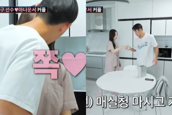 TV조선‘조선의사랑꾼’TV조선‘조선의사랑꾼’TV조선‘조선의사랑꾼’TV조선‘조선의사랑꾼’[뉴스엔하지원기자]'조선의사랑꾼'송민규곽민선커플이신혼집을공개했다.9월29일방송된TV조선'조선의사랑꾼'에는결혼을앞둔축구선수송민규아나운서곽민선커플이출연했다.두사람은전주에있는신혼집에서지내고있다.송민규는"민선이가서울에서일하다보니길면일주일짧으면2박3일서울에있다가전주에온다"라고했다.곽민선은"운동선수예비신부로서내조해야겠다는생각이들었다.최대한전주에내려가서챙겨주려고노력한다"라고말했다.이날공개된신혼집은화이트톤의세련된인테리어와시원하게탁트인논밭뷰가인상적이었다.두사람은커플잠옷을입고다정한분위기를자아냈다.이들은뽀뽀를하는등애정넘치는모습을보여줬다.MC들은"보기좋다","상큼하니좋다","풋풋하다"등반응을보였다.뉴스엔하지원oni1222@기사제보및보도자료[email protected]ⓒ뉴스엔.무단전재&재배포금지Copyright©뉴스엔.무단전재및재배포금지.
