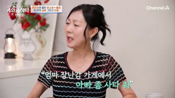 채널A‘절친토큐멘터리4인용식탁’캡처채널A‘절친토큐멘터리4인용식탁’캡처채널A‘절친토큐멘터리4인용식탁’캡처[뉴스엔유경상기자]방은희“제일잘한건이혼,제일못한건결혼,아들은잘낳아”2번이혼한방은희가과거재혼이유를고백했다.9월29일방송된채널A‘절친토큐멘터리4인용식탁’에서는배우방은희가절친양소영변호사,배우율희를초대했다.방은희는“나는세상에서제일잘못한게결혼이다.두번을하면뭐하냐.사랑없이결혼을했다.처음에만나자마자33일만에결혼,두번째는30일만에결혼했다”며“연애자체를중요하게생각안했던거다.솔직하게말해서.덧없는거다.그리고교만했다.결혼이별거야?같이친구처럼살면되지.그건나만의생각이었던거다.같이그랬어야했는데같이못그래서내가실패한거다.어리석은거다.내가나를사랑하지않아서그런거”라고2번의이혼이유를자평했다.이어방은희는“사랑에대해연기하는데사랑이뭔지모르겠다.제일잘한건이혼,제일못한건결혼,하지만결혼속에잘한건아들을낳은것.아이를낳았을때내가여자인것에너무감사했다.그전에는내가여자인게너무싫었다.그때는내가여자인게행복했다.내가살아있는이유,내존재의이유다”고아들사랑을드러냈다.방은희는두번째결혼이유에대해“두번째는정말안하려고했다.남자친구는사귀겠다.하지만결혼은안하겠다.아들이3살때‘엄마장난감가게에서아빠좀사다줘’정말미어터진다.그러고그노래있잖아.‘아빠힘내세요’유치원가서그런노래를하잖아.내앞에서하다가갑자기순간멈칫했다가웃으면서‘엄마힘내세요’그러면미친다”고‘아빠힘내세요’노래가사를엄마로개사해부르던아들의모습을떠올리며눈물을보였다.방은희는“정말사랑그런거없이엔터대표고강한사람이라고하니그런사람이면우리아이아빠가돼줄수있겠다한거다.그런데생각보다.그쪽도재혼인데아이가없다.없으니까모르는거다.같이식사를하는데대화도없고”라며원하던가족을이루지못했다고했다.양소영변호사가“(내아들이)사랑받는다는느낌이없어서슬퍼서이혼을한거”라며안타까워했다.방은희는“내가오죽하면그랬겠냐.아들에게상의를했다.엄마이혼하면아들어떨거같아?그느낌을아니까.엄마,나때문에그러지마.엄마를위해서살아.너무빨리성숙해서미안할정도다.상의를한건중학교때다.고등학교때도장을찍었다.너무미안하다”고아들을향한미안함을고백했다.박경림은“아들이든든한엄마편”이라며부러움을드러냈다.방은희는“아들이어릴때부터촬영장을데리고다녔다.어느날쫑파티2차노래방에가면마이크들고있는거다.노래를안들려줬다.연예계관심가질까봐.너무어릴때부터연예인되는게싫다.안쓰럽다.똑똑한애들이하는건데내아이는평범했으면좋겠다.평범함이가장아름답다.어느날소녀시대노래를부르더라.내가들려준적이없는데.매니저가듣고바로외웠다는거다.지금은영화감독을꿈꾸고있다”며아들이미국보스턴에있는터프츠대학교재학중이라밝혔다.박경림이“아드님이영화감독님이되면어머니를?”캐스팅할계획인지묻자방은희는“졸업작품부터세작품은돈안받고해주기로했고그다음부터는돈을줘야한다.기브앤테이크다.세상에공짜없다”고답했다.방은희는“내가지금은매니저없이혼자다니니까아들이매니저도해준다”고자랑했고,박경림이“아들이일당백이다.매니저이자친구”라고감탄하자“아빠,남편,오빠,동생,아들.남자의모든걸다해주는것같다”고아들을자랑했다.(사진=채널A‘절친토큐멘터리4인용식탁’캡처)뉴스엔유경상yooks@기사제보및보도자료[email protected]ⓒ뉴스엔.무단전재&재배포금지Copyright©뉴스엔.무단전재및재배포금지.