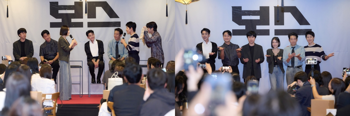 오는10월3일극장가에웃음바람을몰고올영화'보스'가주연배우들과팬들이함께한‘미미루에짜장면먹으러와루!’팝업이벤트를성황리에마무리했다.[감독:라희찬출연:조우진,정경호,박지환,이규형,오달수,황우슬혜,정유진,고창석그리고이성민제작:(주)하이브미디어코프제공/배급:(주)하이브미디어코프,(주)마인드마크]iMBC연예뉴스사진언론시사회이후유수의매체로부터“명절맞춤형코미디의‘보스’”(마이데일리강다윤기자),“온가족이즐기는'맛있는팝콘무비’”(스포츠동아이승미기자),“이번추석가장대중적인상업영화”(뉴스1정유진기자)와같은호평을들으며기대를끌어올린영화'보스'가이번엔팬들과함께한특별이벤트인‘미미루에짜장면먹으러와루!’를성황리에마무리해시선을끈다.'보스'는조직의미래가걸린차기보스선출을앞두고각자의꿈을위해서로에게보스자리를치열하게‘양보’하는조직원들의필사적인대결을그린코믹액션영화.지난수요일에진행된이번행사는영화'보스'속조직의2인자이자중식당셰프인주인공‘순태’(조우진)의주요공간인중식당‘미미루’의개업파티컨셉으로꾸며진공간에개업축하선물로채워진웰컴키트로팬들을맞이하며신나게출발했다.이어배우조우진,정경호,박지환,이규형,황우슬혜와라희찬감독까지'보스'의주역들이뜨거운환호를받으며등장해현장의열기를고조시켰다.감독과배우들의설렘가득한인사로시작한본이벤트는팬들과함께하는다채로운프로그램으로이어졌다.라희찬감독과조우진,황우슬혜가이끄는‘TEAM미미루’와정경호,박지환,이규형의‘TEAM보스’로나뉘어펼쳐진‘철가방게임’,‘탕수육게임’,‘순간포착영상퀴즈’등은치열한승부와팀워크로현장을웃음과긴장감으로가득채웠다.팬들과배우들이한호흡으로어우러진생동감넘치는게임은모두의몰입을이끌어냈고,‘TEAM보스’가최종승리를거두며짜릿한여운을남긴가운데감독과배우,팬들이가깝게소통하며어울린현장은열띤반응을이끌어냈다.iMBC연예뉴스사진여기에럭키드로우시간에는요리에진심인‘순태’의조미료세트,탱고에빠져조직의보스자리를마다하는‘강표’(정경호)의블루투스스피커,가스통으로상대조직을접수하는‘판호’(박지환)의휴대용가스레인지,조직에잠입한언더커버경찰‘태규’(정경호)의마사지건등영화속캐릭터에꼭들어맞는맞춤선물들이준비되어팬들에게웃음을안겼다.특히메인이벤트가종료된후‘미미루’의시그니처음식인짜장면과짬뽕,군만두를기다리던팬들앞에배우들이앞치마를두르고깜짝재등장해직접탕수육을서빙한팬서비스는현장의열기를더욱뜨겁게달구며잊지못할순간을선물했다.이벤트가끝난후SNS에는“배우들이직접서빙도해주고팬들과게임도함께진행하면서현장이완전화기애애♥”(인스타그램_ch********),“철가방게임부터탕슉게임,팬들과게임까지함께한진짜꿀잼현장…!쉴틈없이웃음이터져나오더라구요!”(인스타그램_ar*********),“열정적으로'보스'홍보하는배우들진심멋져요,응원합니다”(인스타그램_ji*****),“직접보니더빛나는케미!현장에서살짝맛본찐텐션보니까,영화에서펼쳐질웃음시너지에기대감뿜뿜!벌써부터개봉일만기다리는중★”(인스타그램_gb******)등‘미미루에짜장면먹으러와루!’팝업이벤트에대한기분좋은반응이이어져,영화개봉에대한기대감을한층더끌어올린다.팬들과함께한‘미미루에짜장면먹으러와루!’팝업이벤트를성료하며화제를모은'보스'는10월3일(금)극장개봉예정이다.iMBC연예유정민|사진출처(주)하이브미디어코프,(주)마인드마크Copyright©MBC연예.무단전재및재배포,AI학습금지.