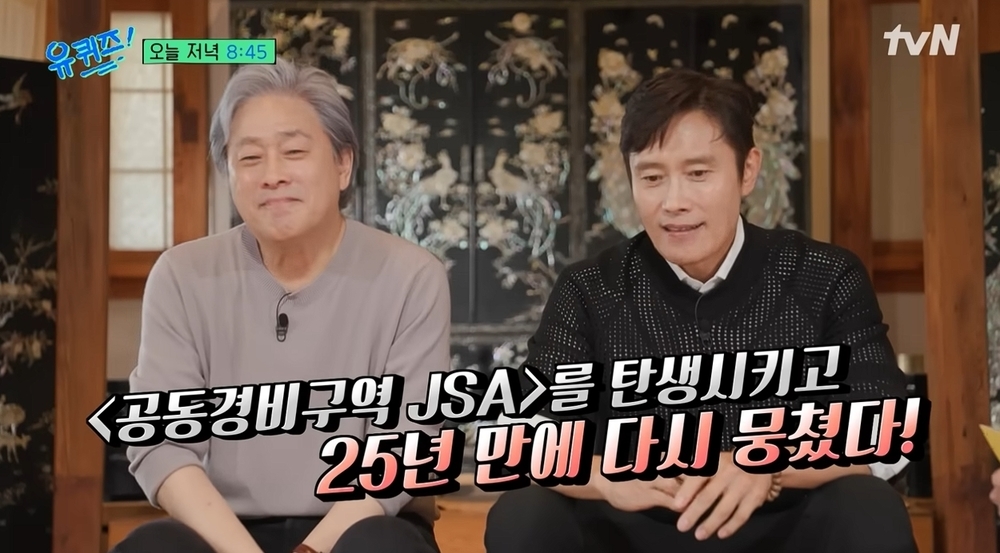 tvN‘유퀴즈온더블럭’방송캡처tvN‘유퀴즈온더블럭’방송캡처[뉴스엔배효주기자]박찬욱감독과이병헌이약25년전대박을터뜨린작품'공동경비구역JSA'탄생비하인드를밝혔다.이들은9월24일오후방송된tvN'유퀴즈온더블럭'에출연해영화'어쩔수가없다'에관련된여러이야기를나누었다.유재석은두사람을향해"두편의영화를망친감독과네편의영화를망친배우가만나'공동경비구역JSA'를만들었다"고운을뗐다.그만큼무명의세월이길었다고밝힌박찬욱감독과이병헌.무려8년간무명감독생활을했다는박찬욱감독은봉준호,류승완등동료감독과함께'자랑과험담'이라는모임까지만들었었다며"힘든시절을보내고있는사람들끼리모여서지금인기있는선배나동료감독들영화보고'그렇게밖에못할까''이해가안된다.왜저렇게밖에못찍나'하는울분에찬험담을했다"고말했다.그러나이를들은이병헌은"저는그렇지않다"고선을그어웃음을자아냈다.그러면서"사람이앞과뒤가다르면안된다"고첨언했다.한편,이병헌은"제가두번째영화망하고세번째영화인'그들만의세상'기술시사를스태프들과할때,조감독이오더니'지금바깥에어떤감독님이기다리고있는데얼굴좀보자고한다'고하더라.어떤분이코트를입고포니테일헤어스타일을하고대본을들고서계시는데,일단겉모습만봐도비호감인그런모습이었다.'정말비호감인데?'생각했는데워낙시나리오를재밌게써서'한번만나자'했던것이'공동경비구역JSA'"라회상했다.한편,24일개봉한영화'어쩔수가없다'는‘다이루었다’고느낄만큼삶이만족스러웠던회사원‘만수’(이병헌)가덜컥해고된후,아내와두자식을지키기위해,어렵게장만한집을지켜내기위해,재취업을향한자신만의전쟁을준비하며벌어지는이야기를담은작품이다.뉴스엔배효주hyo@기사제보및보도자료[email protected]ⓒ뉴스엔.무단전재&재배포금지Copyright©뉴스엔.무단전재및재배포금지.