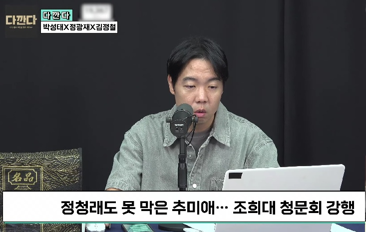 [스타뉴스|허지형기자]황현희/사진=유튜브채널'여의도너머'캡처방송인황현희가추미애법사위원장중심으로강행하고있는조희대대법원장청문회에우려를표했다.황현희는지난24일유튜브채널'여의도너머'라이브방송에서"조희대대법원장청문회관련해'당대표도못막은추미애'라는기사가났더라"라며"추위원장이무리수를둔다는평가도나오긴하고있다"고말했다.그는"예전부터추위원장이뭐만건드리면상대방이엄청나게이슈가되고스타가된다.누구는대통령도되는일이있었다"고덧붙였다.그러자박성태사람과사회연구소실장은"추위원장이누구의말을듣는스타일이아니다.누구도제어할수없는상황"이라고분석했다.그러면서박실장은"추위원장이경기도지사출마를고려해강성지지층결집을겨냥하고있다는분석이당내에서나오고있다"고전했다.허지형기자[email protected]©스타뉴스&starnewskorea.com,무단전재및재배포금지