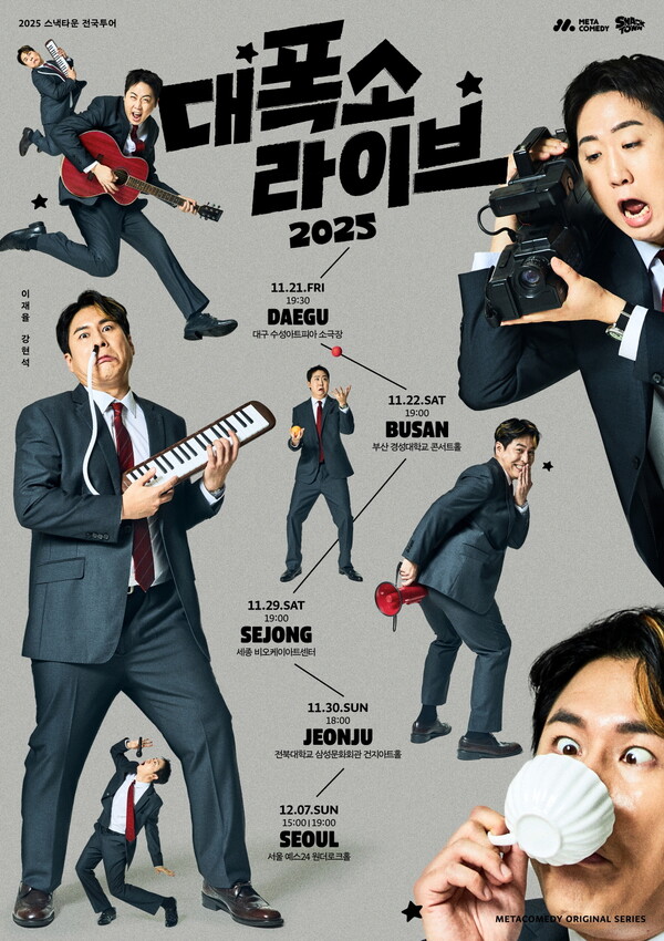 ▲‘대폭소라이브2025’가11월부터전국투어에나선다.티켓예매는29일오후2시부터예스24티켓을통해시작된다.26일에는스낵타운의팬들을위한‘대폭소라이브2025’특집라이브방송이스낵타운유튜브채널에서진행된다.제공|메타코미디[스포티비뉴스=김원겸기자]코미디듀오스낵타운이오는11월부터전국투어‘대폭소라이브2025’를열고다시한번웃음대장정을시작한다.스낵타운은코미디언이재율,강현석으로구성된코미디듀오.2022년'원마이크투멘',2023년‘레전드’에이어국내코미디듀오최초로세번째전국투어를펼치며관객들과호흡할준비를마쳤다.‘대폭소라이브2025’는더욱강력한웃음으로관객들을폭소시키겠다는스낵타운의포부를시작으로만담부터콩트,음악개그까지다채로운포맷을총망라한다.소속사메타코미디는“그동안꾸준히관객들을만나왔던스낵타운의만담과더불어관객들이공연을관람하는내내폭소할수있는신선한콘텐츠로구성될예정”이라고귀띔했다.총2000석규모로진행되는‘대폭소라이브2025’는11월21일대구수성아트피아소극장(무학홀)에서포문을열고,22일부산경성대학교콘서트홀,29일세종비오케이아트센터공연장,30일전주전북대학교삼성문화회관건지아트홀에서각각관객을만난다.마지막으로12월7일서울광장동예스24원더로크홀에서하루두차례공연으로전국투어의대미를장식한다.스낵타운의두멤버이재율,강현석은이미방송과SNS등다양한플랫폼을통해주목받으며1020세대와MZ세대의폭발적인호응을얻고있다.이재율은OOTD스튜디오‘포렌식’,이용진유튜브‘조롱잔치’,MBC‘복면가왕’등다양한예능프로그램에출연하며다재다능한매력을입증했다.특히유튜브와인스타그램쇼츠에서는재치있는반전아이디어와신선한코미디포맷으로매영상마다꾸준히높은조회수를기록하며온라인에서도독보적인존재감을입증하고있다.<저작권자ⓒSPOTVNEWS.무단전재및재배포금지>Copyright©스포티비뉴스.무단전재및재배포금지.
