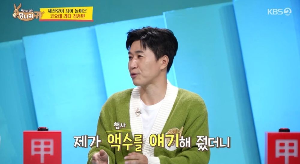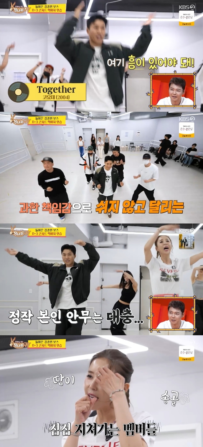 ‘사당귀’.사진lKBS신지가김종민이결혼후달라졌다고했다.21일오후방송된KBS2예능프로그램‘사장님귀는당나귀귀’(이하‘사당귀’)에서코요태가모습을보였다.이날방송에서코요태는콘서트3일전막바지연습에돌입했다.특히김종민은결혼후달라진보였다.과거에다른멤버에게답변을미뤘지만흥을끌어올려야한다며팀을주도했다.그러나김종민은혼자서만군무를틀리기도.이에신지는“어쩔수없이새신랑이라텐션이높아져있어요.그래도군무할때는맞춰야지.맛이가있어요”라고속마음을내비쳤다.이후에도김종민은높은텐션으로연습을강행했다.연습2시간만에휴식을취하자는신지의말에도종민은“안돼쉬면안된다”면서혼자서춤연습을이어갔다.‘사당귀’는매주일요일오후4시45분KBS2에서만날수있다.[서예지스타투데이객원기자]Copyright©스타투데이.무단전재,재배포및AI학습이용금지